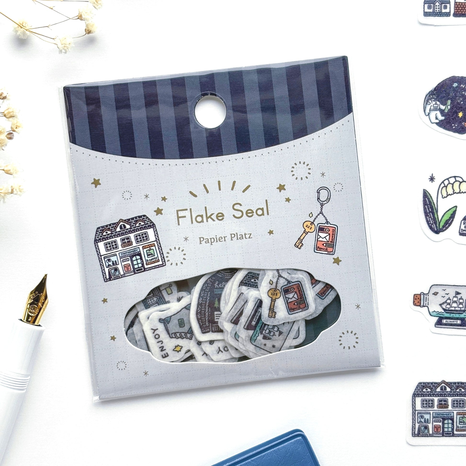 Cute stationery motif flake stickers designed by eric, Japanese eraser stamp artist known for her adorable stationery motif illustrations, great for your planner and journal decoration! There are 9 designs (6 pieces each).