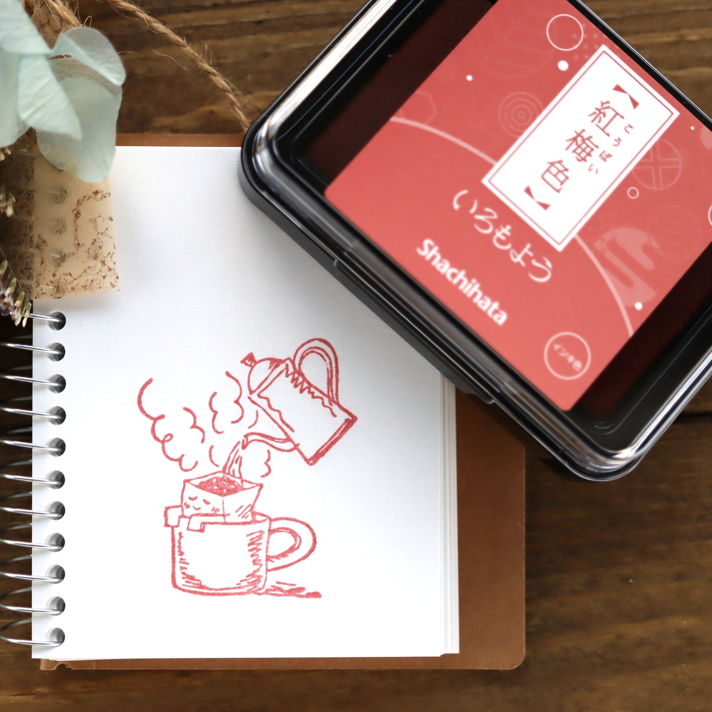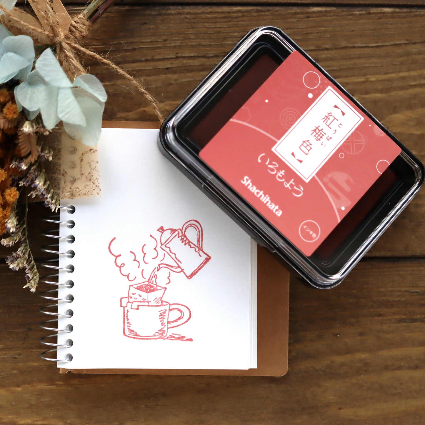 紅梅 (ko bai) is the color of red plum.  Most of the color names in Japan originate from the names of nature, and this Shachihata "Iromoyo" ink pads series was created for you to enjoy more Japanese traditional colors.  This is an oil-based pigment ink which creates sharp and bright result for the stamped image.  The waterproof ink dries faster than water-based pigment ink like Versa Magic, and the ink pad case can be stacked for easy storage.