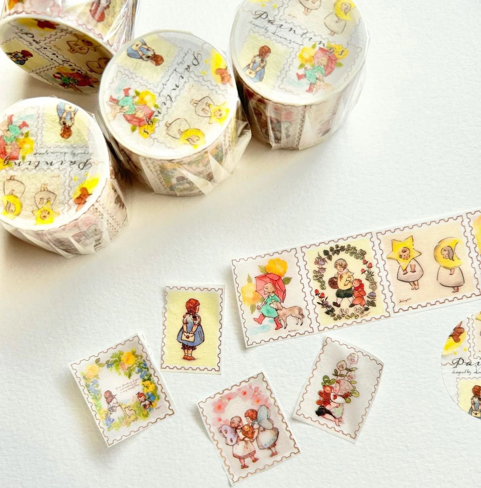 This is a beautiful washi tape designed by a Japanese illustrator Krimgen great for decorating your planner and journal, gift wrapping, mail decoration and lots more! She gets her inspirations from antique/vintage things such as jewelries, potteries and textiles. She is well known for her adorable children illustrations that makes your heart warming.