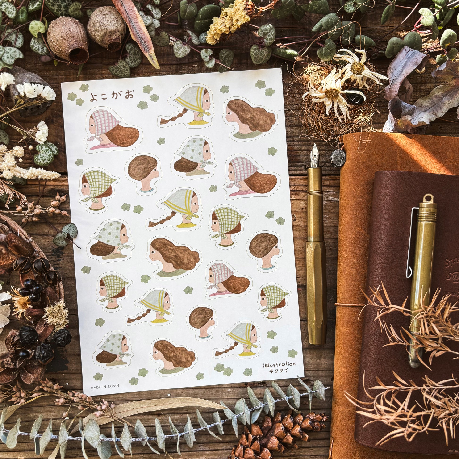 Beautiful A5 sheet stickers designed by Necktie great for your planner and journal decoration. Led by Norio and Asami, Necktie is a creative unit based in Hokkaido Japan with unique illustrations of animals and characters that incorporate a humorous touch.