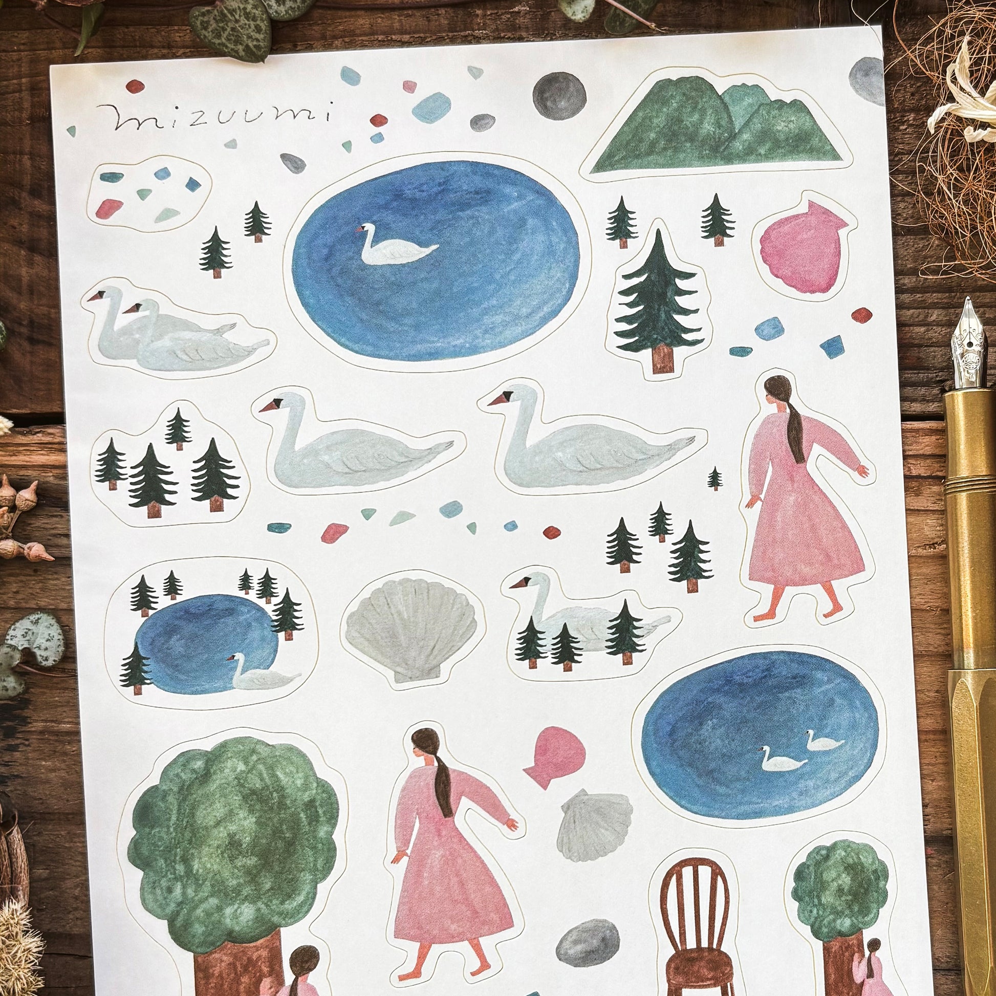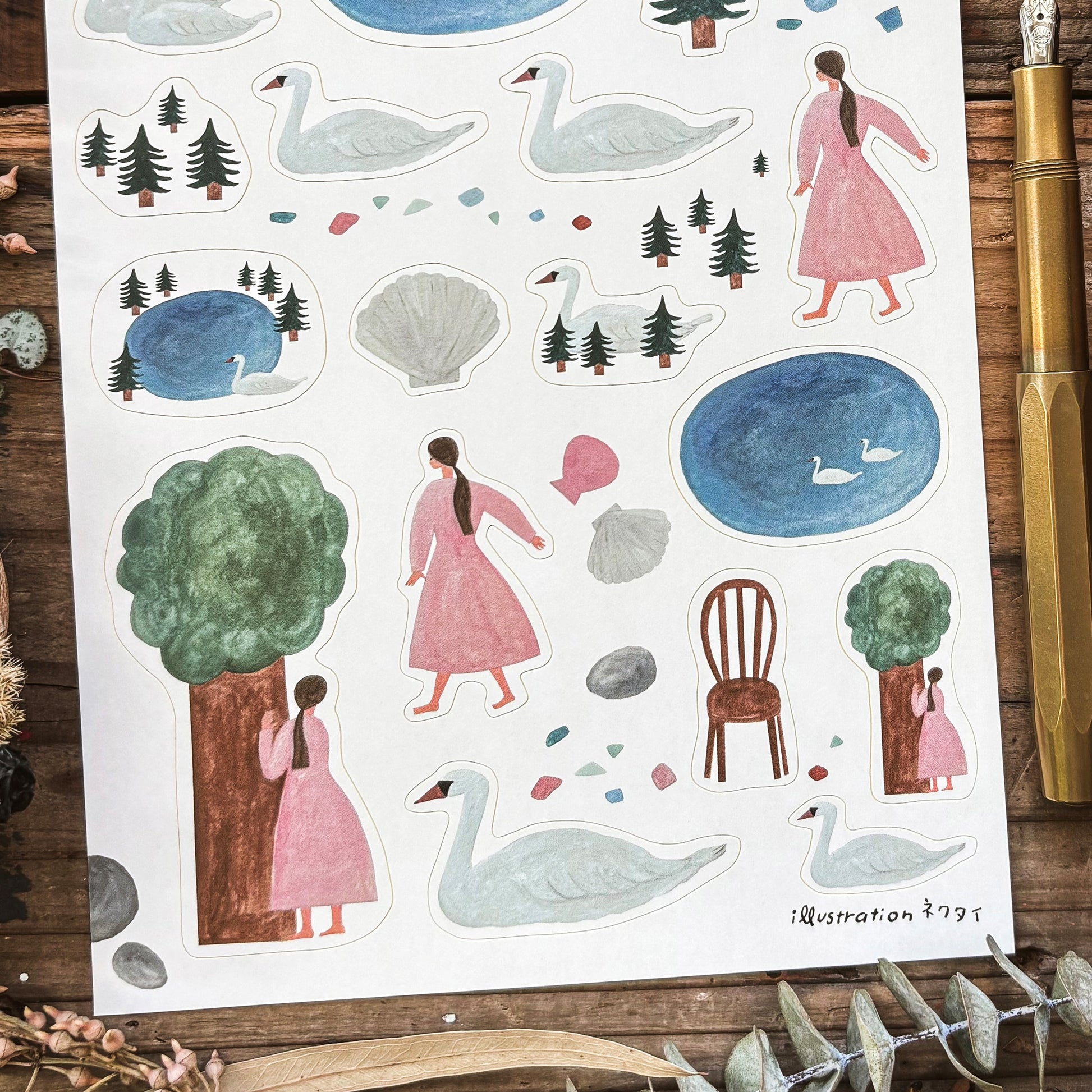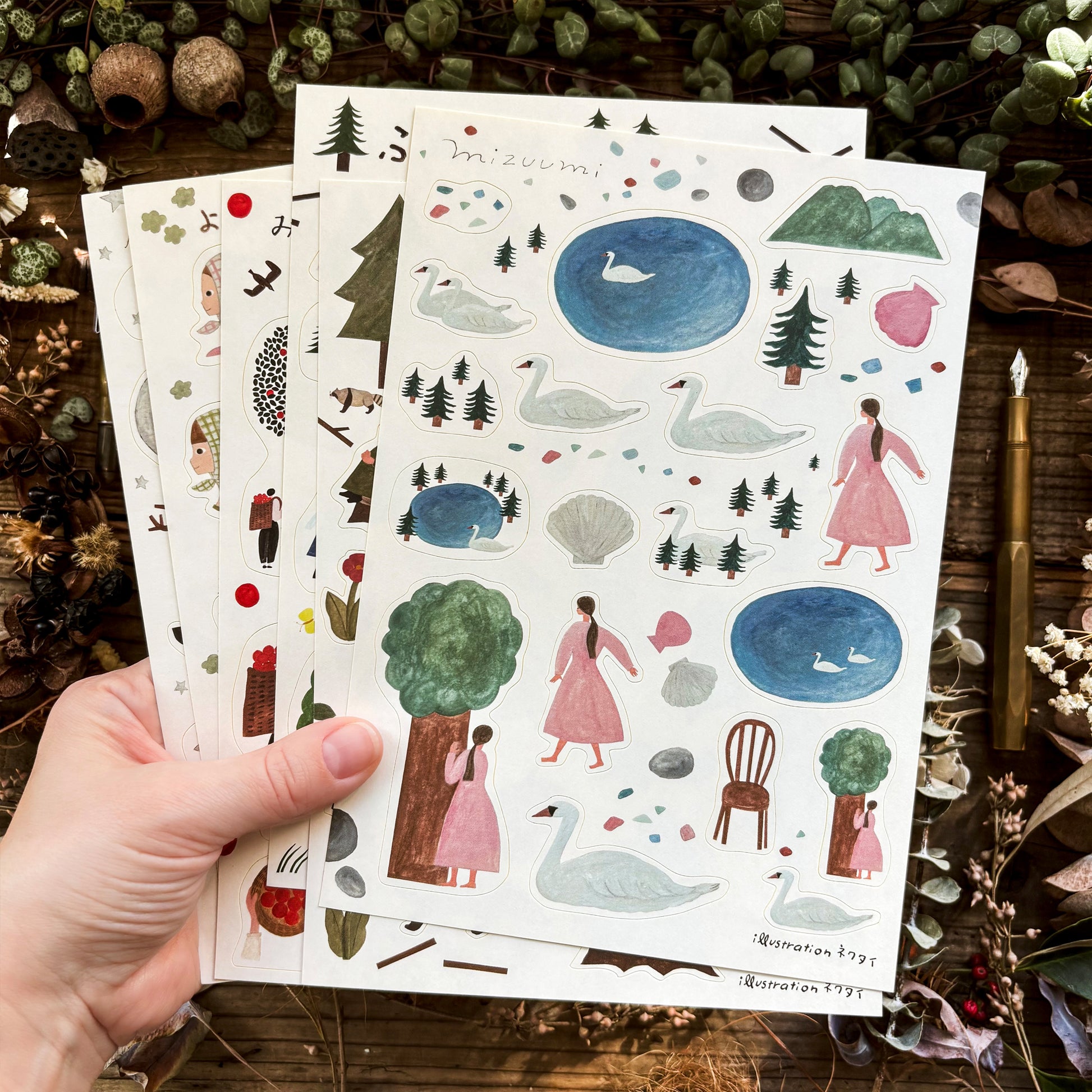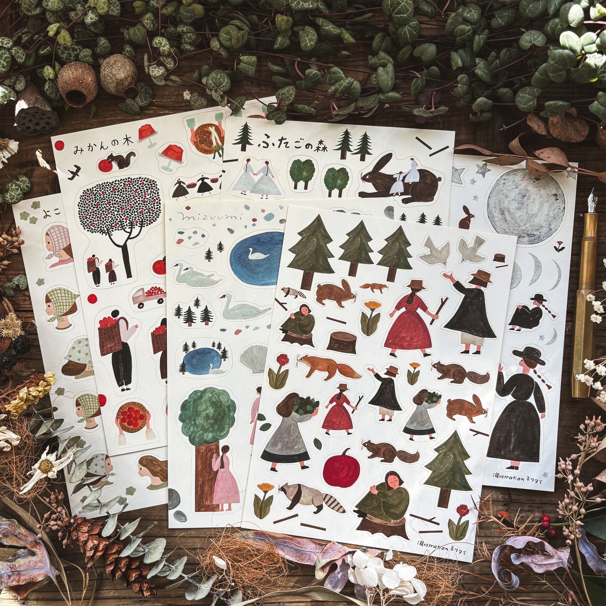 Beautiful A5 sheet stickers designed by Necktie great for your planner and journal decoration. Led by Norio and Asami, Necktie is a creative unit based in Hokkaido Japan with unique illustrations of animals and characters that incorporate a humorous touch.