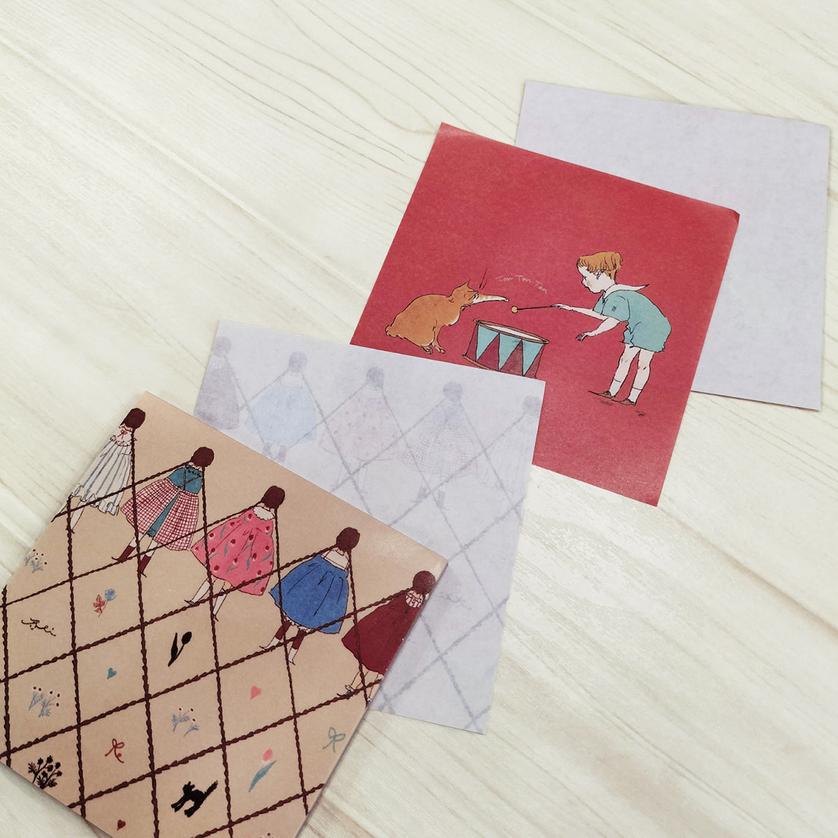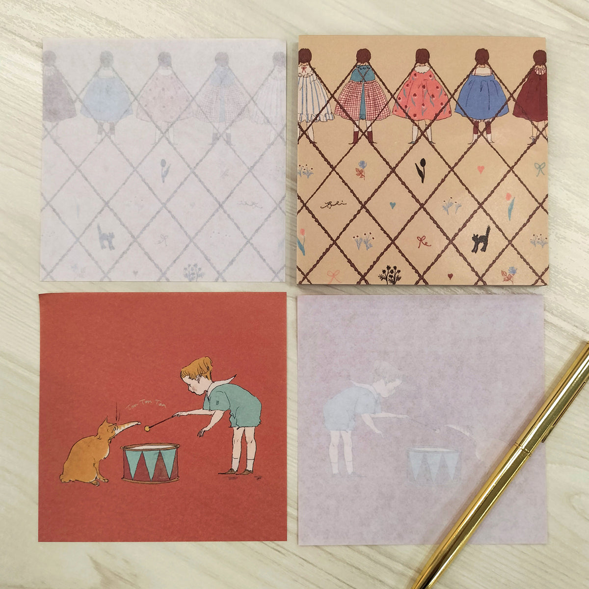 Get ready for cuteness overload with this memo pad by Japanese artist Rei Kurahashi! The paper has a smooth front surface, but a rough back - just like the wrapping paper from olden times. Combining her signature retro and cozy illustrations of children and animals, it's a beautiful match! There are 2 designs, 50 sheets per design, total 100 sheets.
