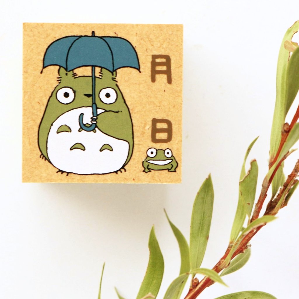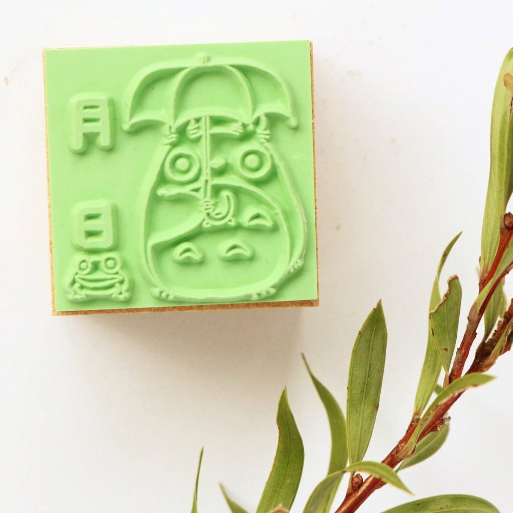 This rubber stamp features Totoro, the lovable character from Studio Ghibli's "My Neighbor Totoro" film. The Kanji on the side means "month" and below, "date". Simply fill in the spaces to show the date. Totoro is a big, fluffy creature with a huge smile who resides in a magical forest. Though it's been 30 years since the film's release, Totoro is still adored by fans worldwide!