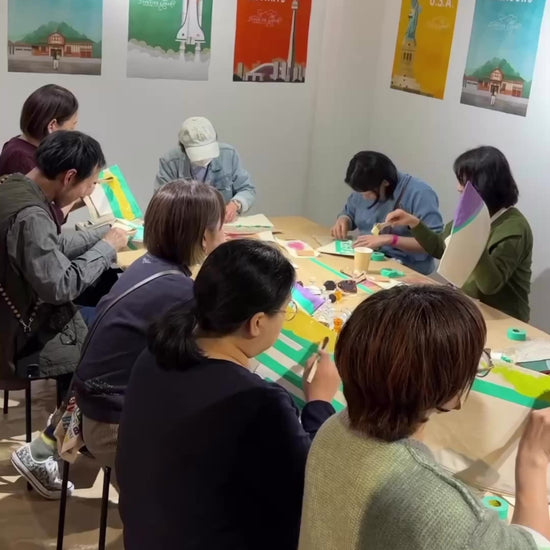 ※こちらの写真や動画はヒューストンと原宿で行ったワークショップの様子です。倉敷のワークショップでは、倉敷をテーマにしたカラーでのペイントや、倉敷限定スタンプをご用意します。