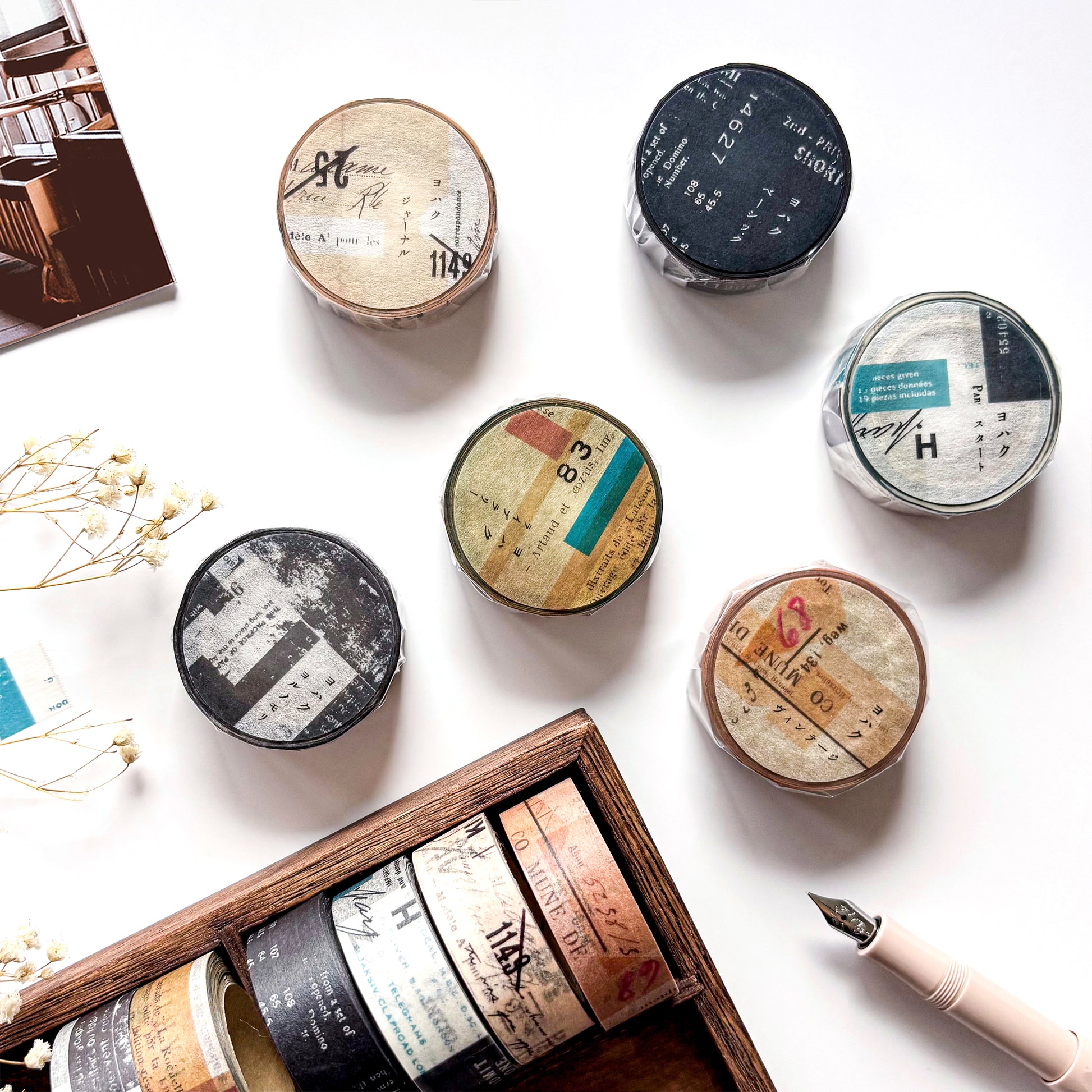 Yohaku’s washi tapes are inspired by little fragments of old paper, creating soft and beautiful collage-style designs. The word “Yohaku” means “blank space” in Japanese, perfectly reflecting the simple and quiet charm of her artwork. Enjoy the gentle beauty in every piece!