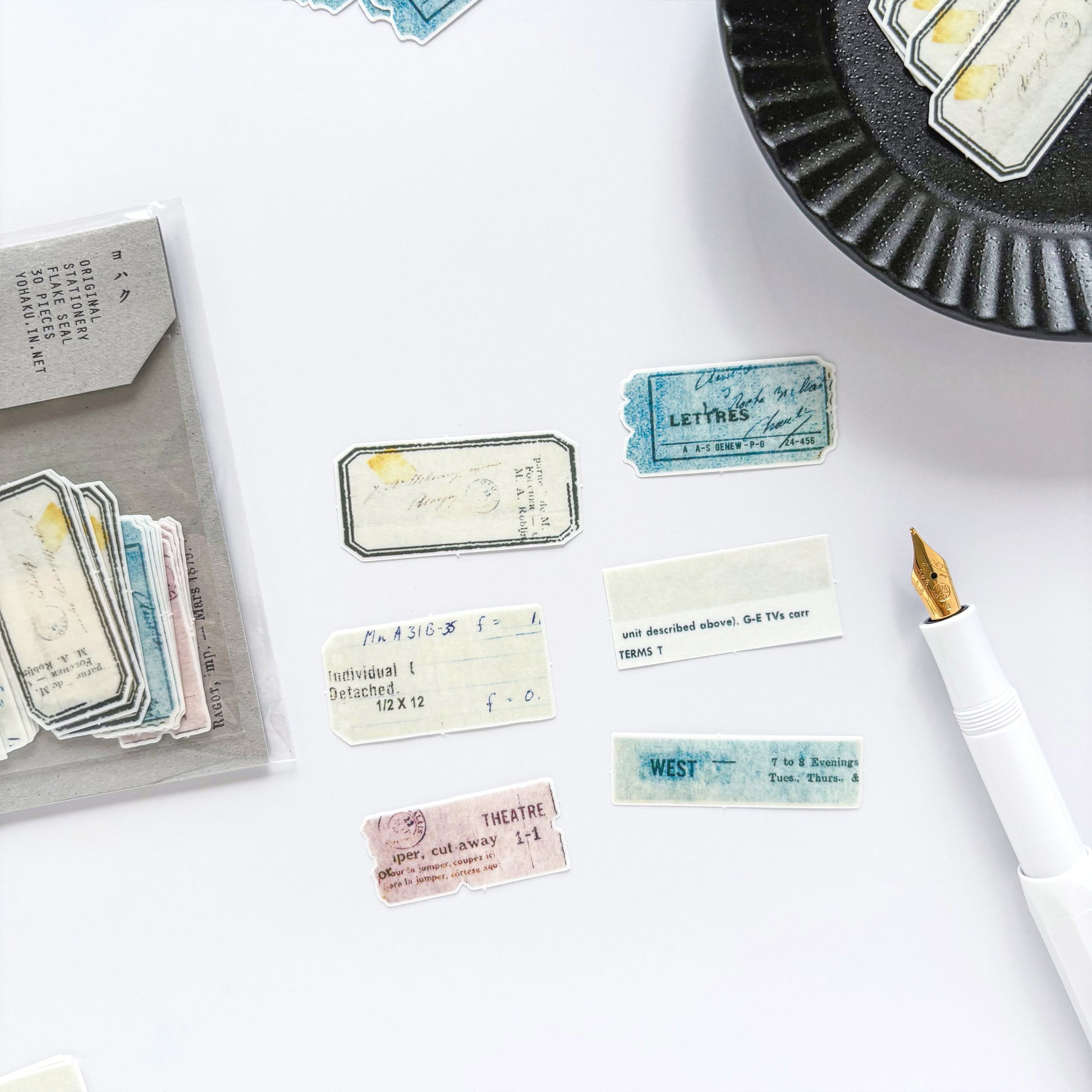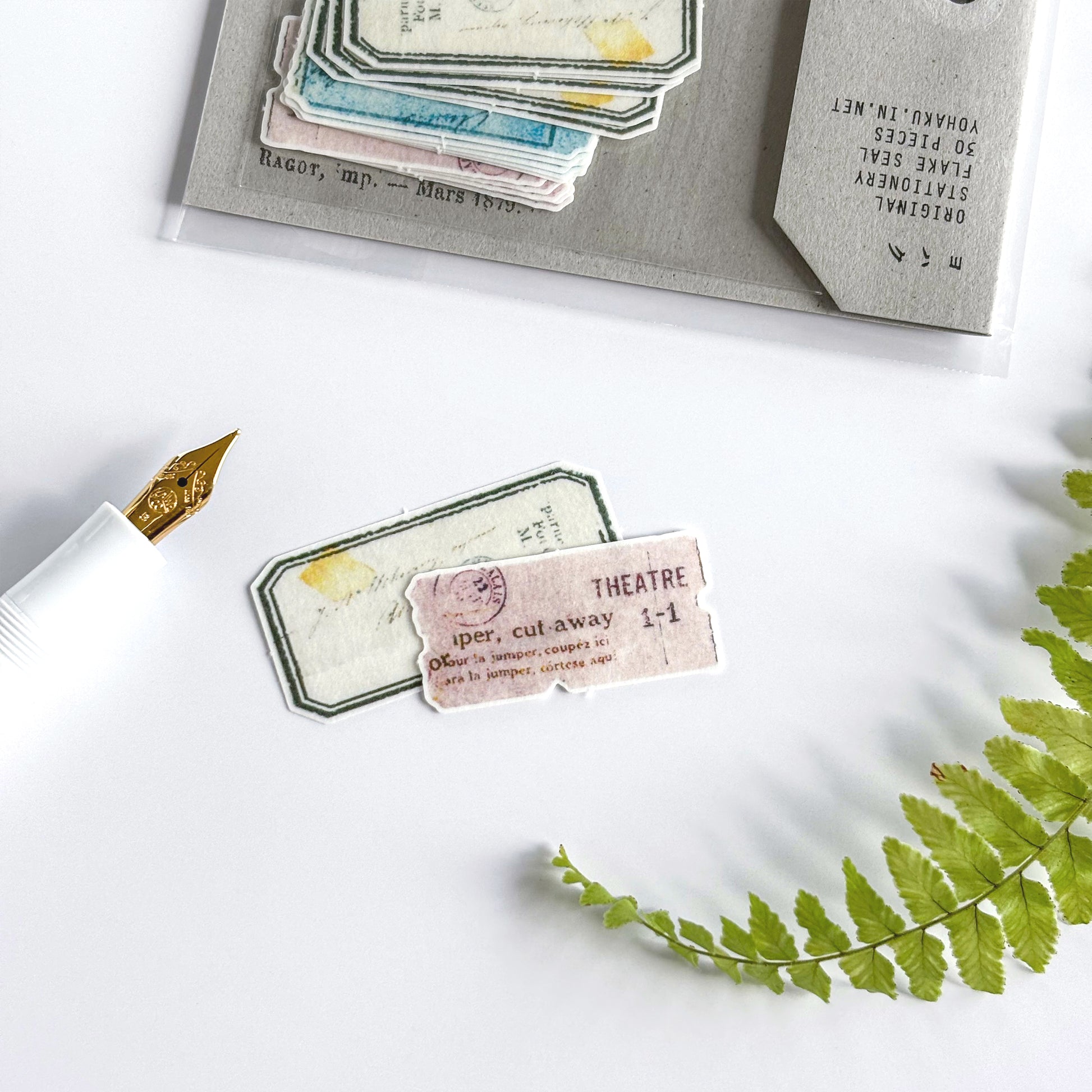 Yohaku’s flake sticker are inspired by little fragments of old paper, creating soft and beautiful collage-style designs. The pack comes with 30 beautiflu flake stickers (6 designs, 5 pieces per design). The word “Yohaku” means “blank space” in Japanese, perfectly reflecting the simple and quiet charm of her artwork.