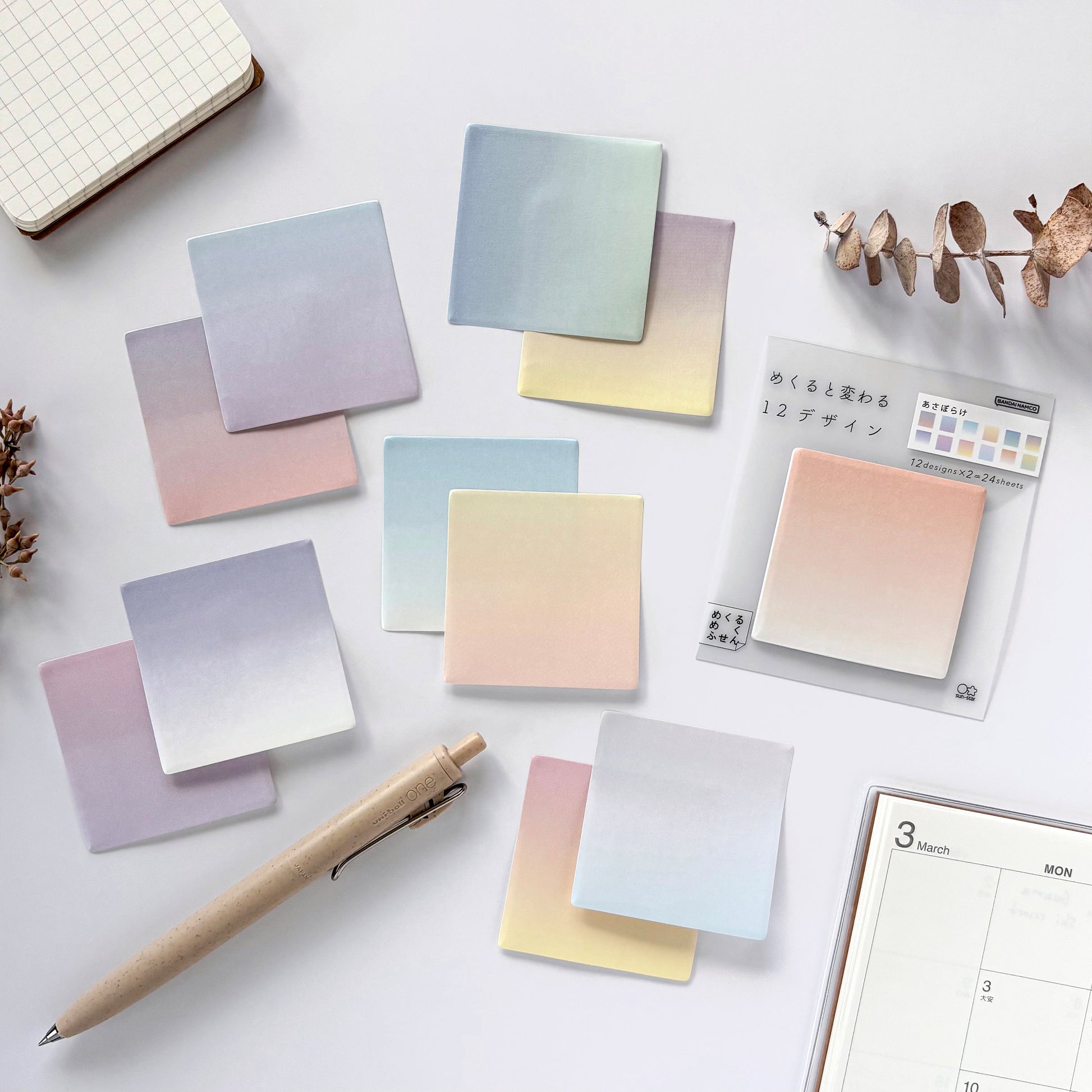 These sticky notes feature 12 different designs of Morning Sky, letting you enjoy a new look each time you turn a page. Two sheets per design, 24 sheets in total.