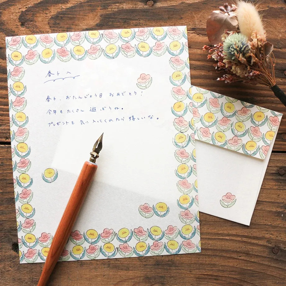 A beautiful Japanese Mino washi paper Letter Set deisgned by Japanese illustrator Admi. It includes 12 sheets of writing paper and 4 envelopes.