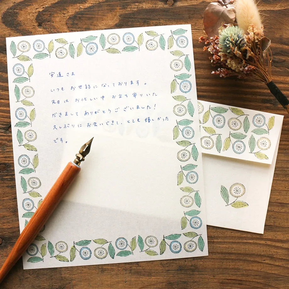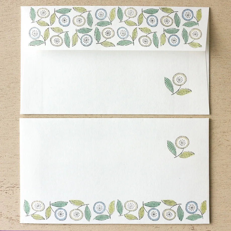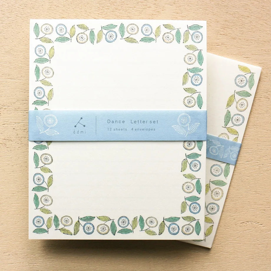 A beautiful Japanese Mino washi paper Letter Set deisgned by Japanese illustrator Admi. It includes 12 sheets of writing paper and 4 envelopes.