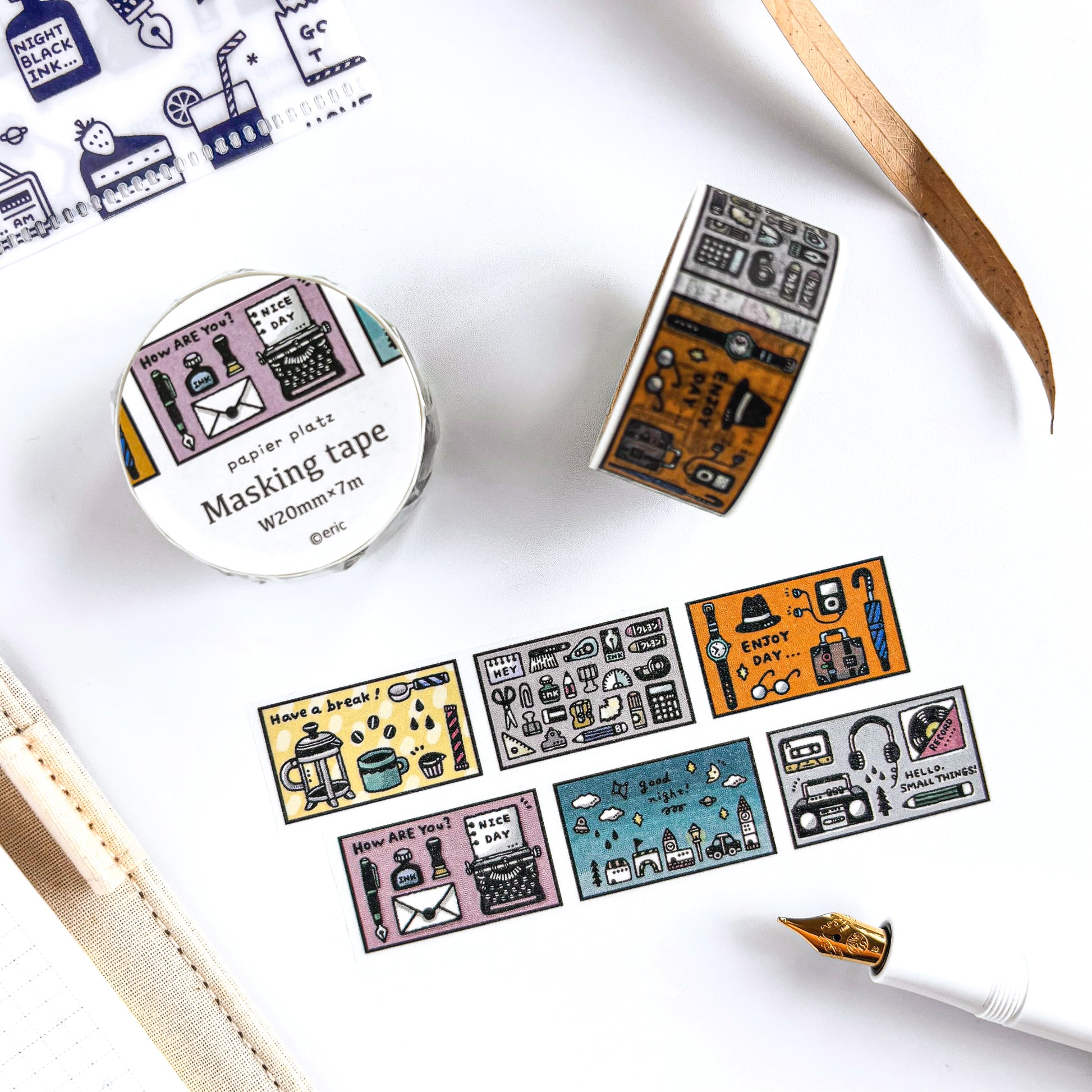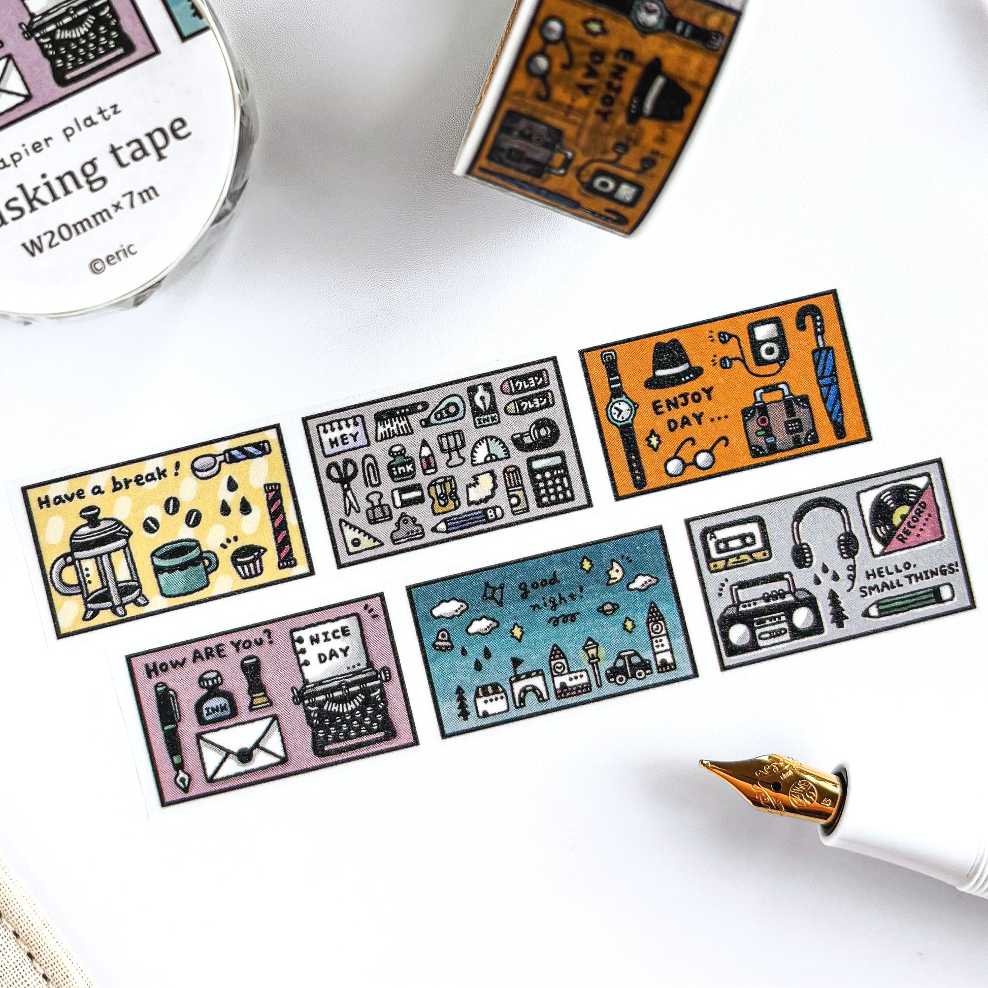 消しゴムはんこ作家ericさんデザインの可愛いマスキングテープです。手帳やノートのデコレーションにぜひお楽しみください。