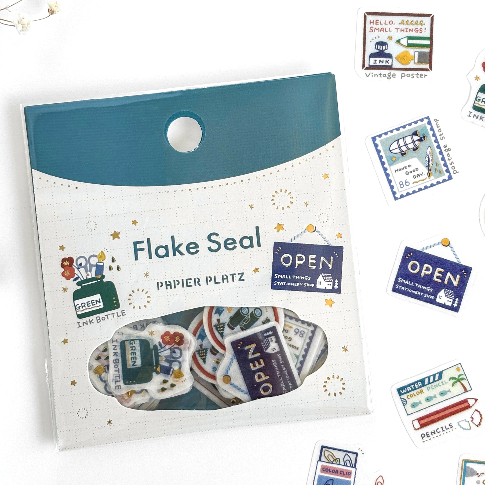 消しゴムはんこ作家ericさんデザインの可愛いフレークシール。マステ素材の箔入りフレークシールが9種×各6枚(計54枚)入っています。