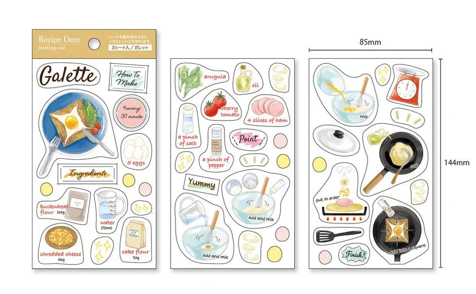 This set includes 3 sticker sheets with Galette designs perfect for decorating your planner and journal. The stickers are made with tracing paper for a unique touch.