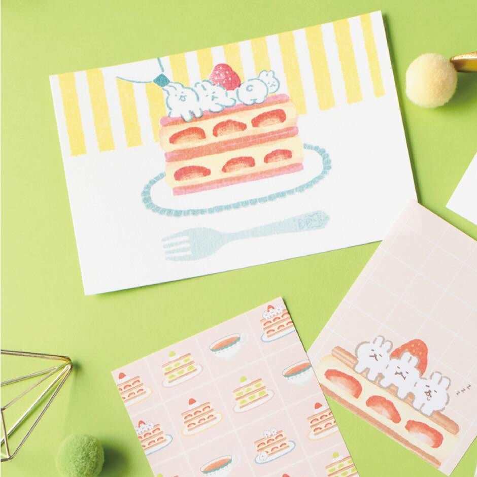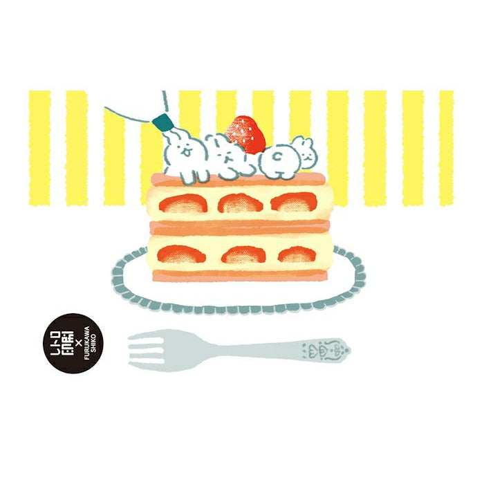 Cute postcard from "Okashina Animal Studio" collection. It is printed using a unique risograph technique, where each color is applied separately, creating delightful, one-of-a-kind misprints - often called 'fun taste' in Japanese.