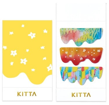 Stickers are clear film stickers that can be removed and repositioned like washi tape, and the set comes with 3 different die-cut designs (7 pieces per designs). You can tuck the cover in the bottom (the white area that says KITTA) to keep it closed. The beautiful watercolor design is by a Japanese illustrator Keina Higashide.