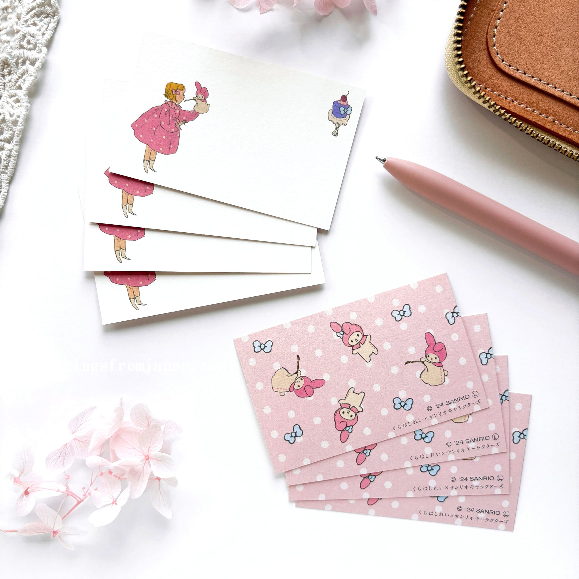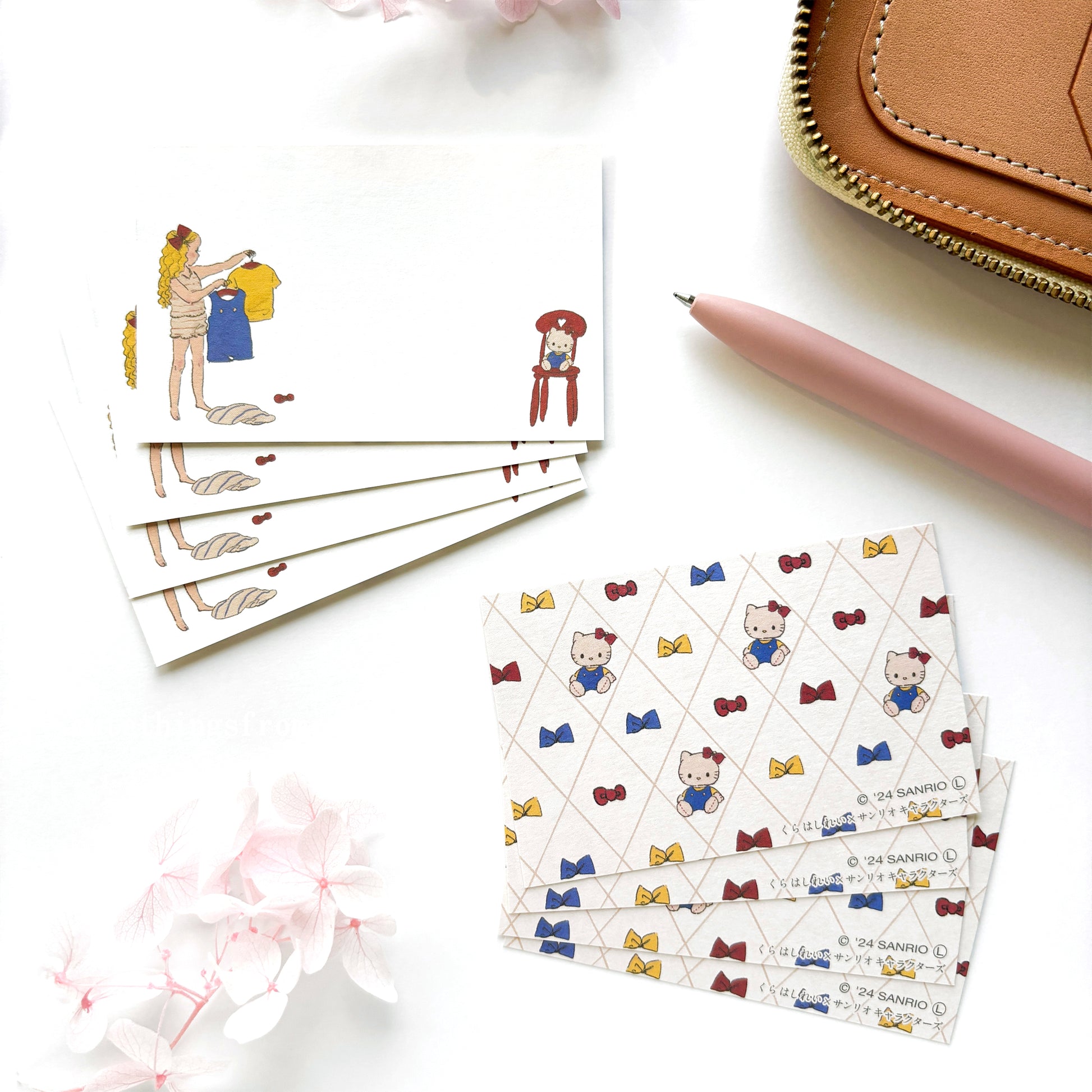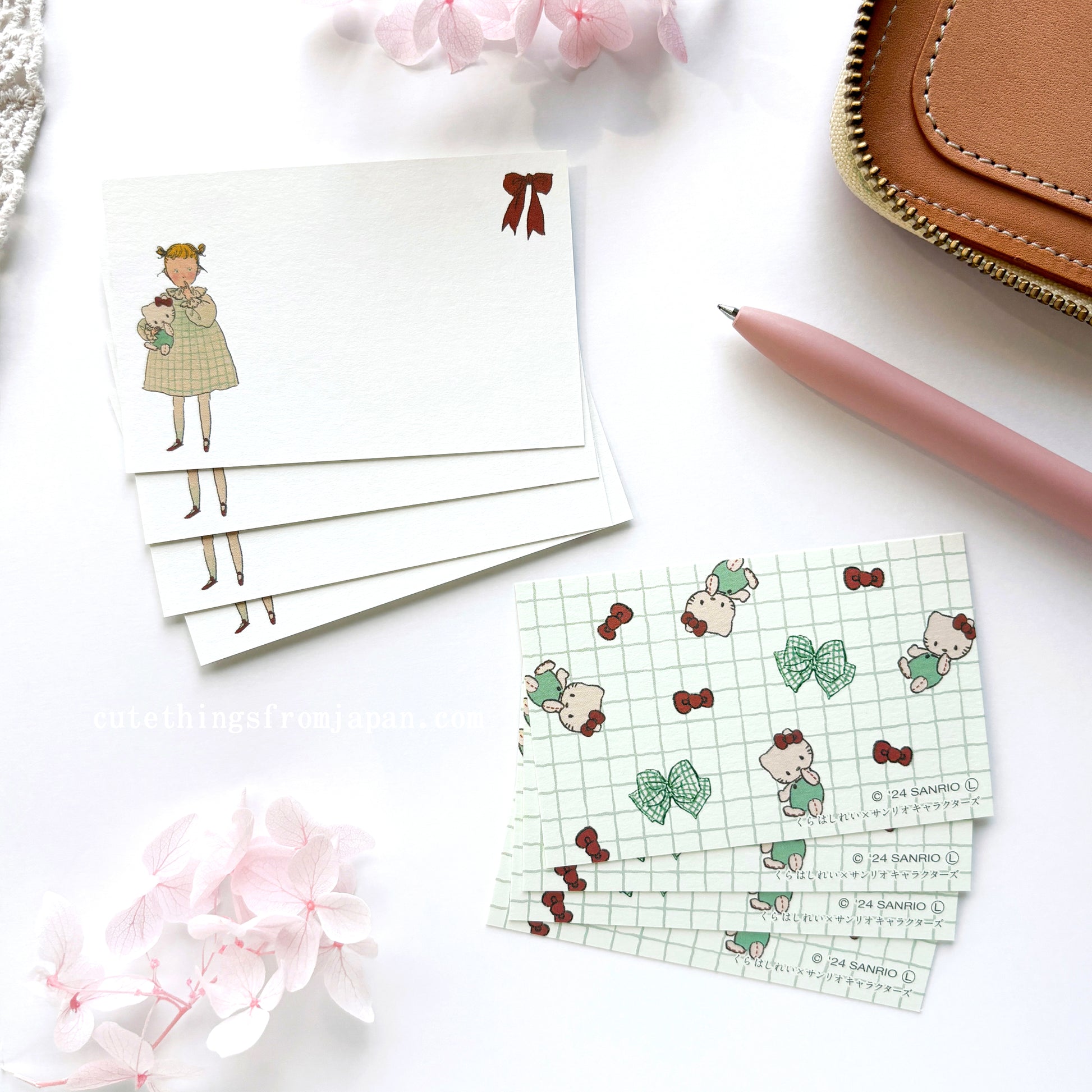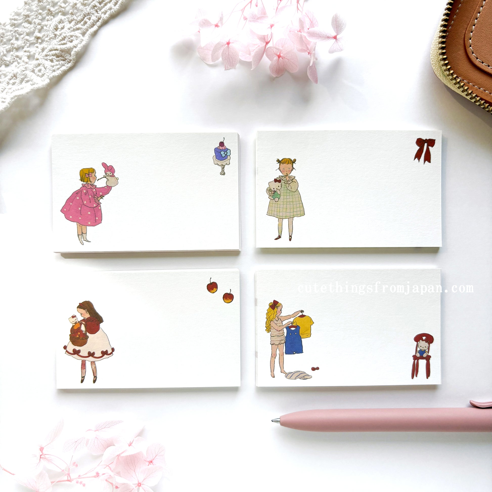 Adorable mini message card set designed by a Japanese illustrator Rei Kurahashi in special collaboration with Sanrio! She is known for her beautiful retro cozy feeling illustrations of children and animals and draws for story books, magazines and books. Each set comes with 2 designs, 4 cards per design, total 8 cards. Avilable in 4 different sets.