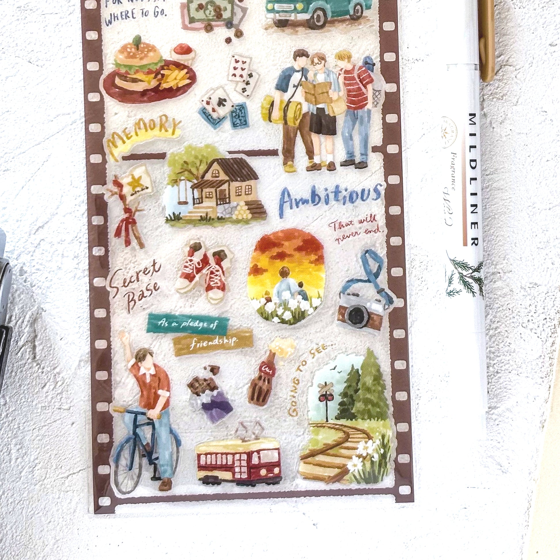 様々なジャンルの映画をテーマにしたシールが新登場。印象的なシーンやモチーフがひとつひとつのピースになっていて、どんな物語なのか想像をふくらませながら楽しめます。フィルムやチケットをイメージした、遊び心あるパッケージも魅力のひとつです。