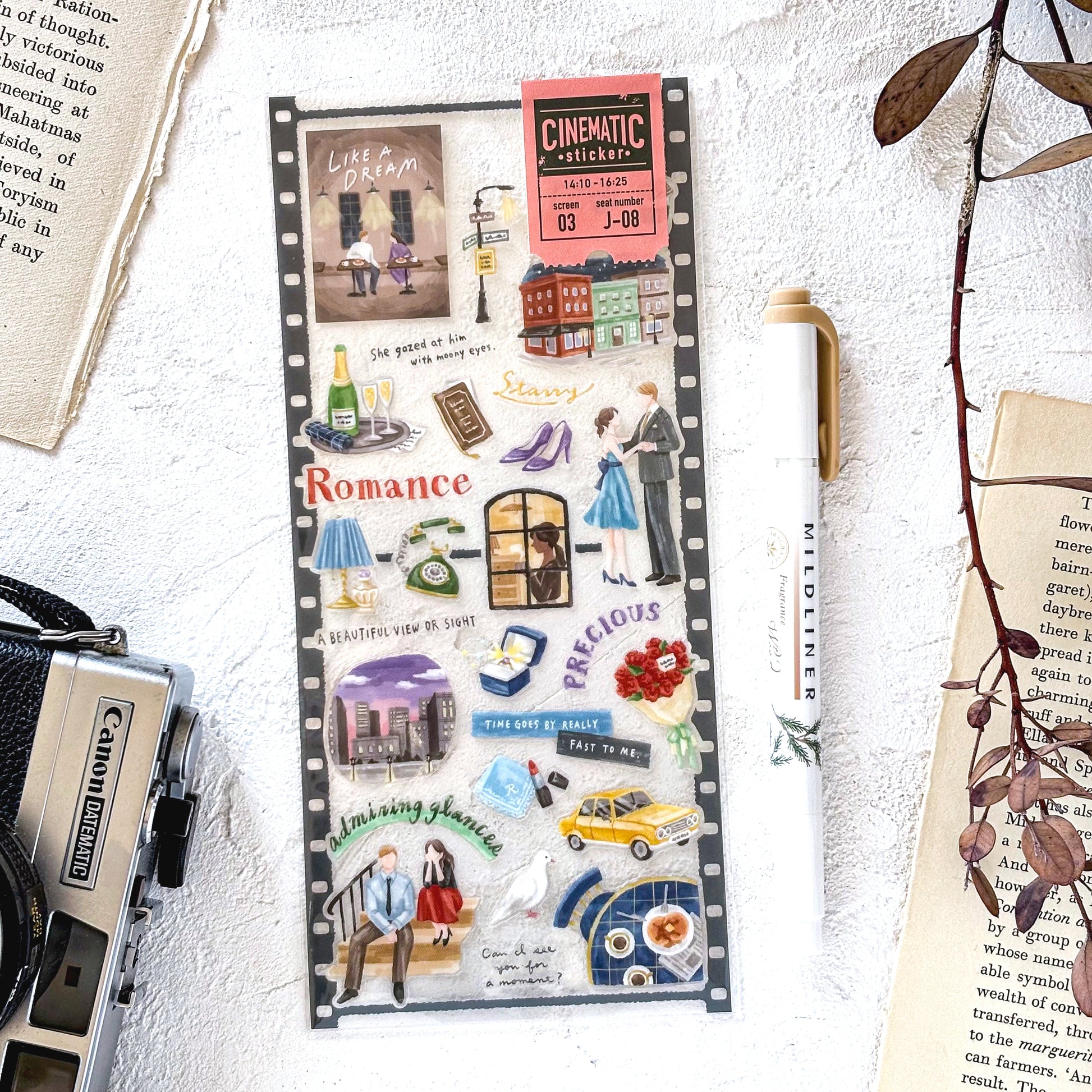 様々なジャンルの映画をテーマにしたシールが新登場。印象的なシーンやモチーフがひとつひとつのピースになっていて、どんな物語なのか想像をふくらませながら楽しめます。フィルムやチケットをイメージした、遊び心あるパッケージも魅力のひとつです。