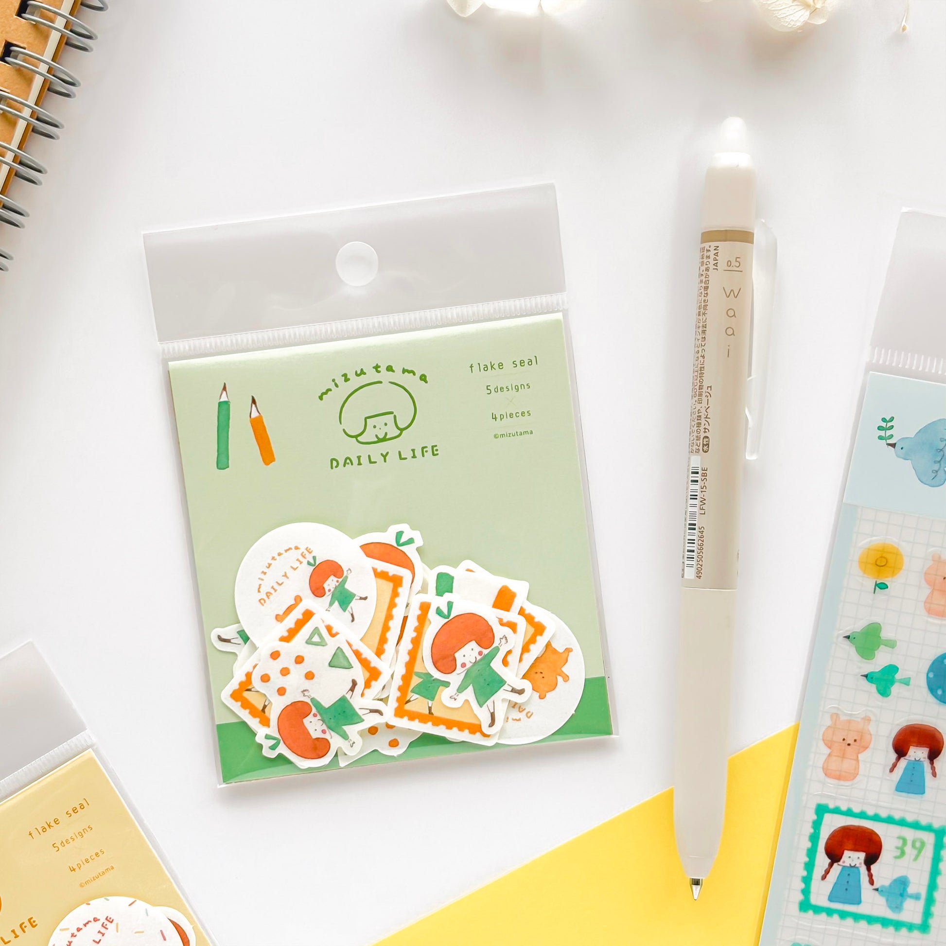 大人気作家mizutamaさんデザインの、おかっぱちゃんと「ちいさなしあわせ」を探しに行くDAILY LIFEシリーズから、和紙フレークシールが登場。お手紙やプレゼントの封留め、手帳デコにおすすめです。裏はスリット入りで剥がしやすくなっています。風合いのある美濃和紙を使用し、柔らかな手触りを感じながらお使いいただけます。