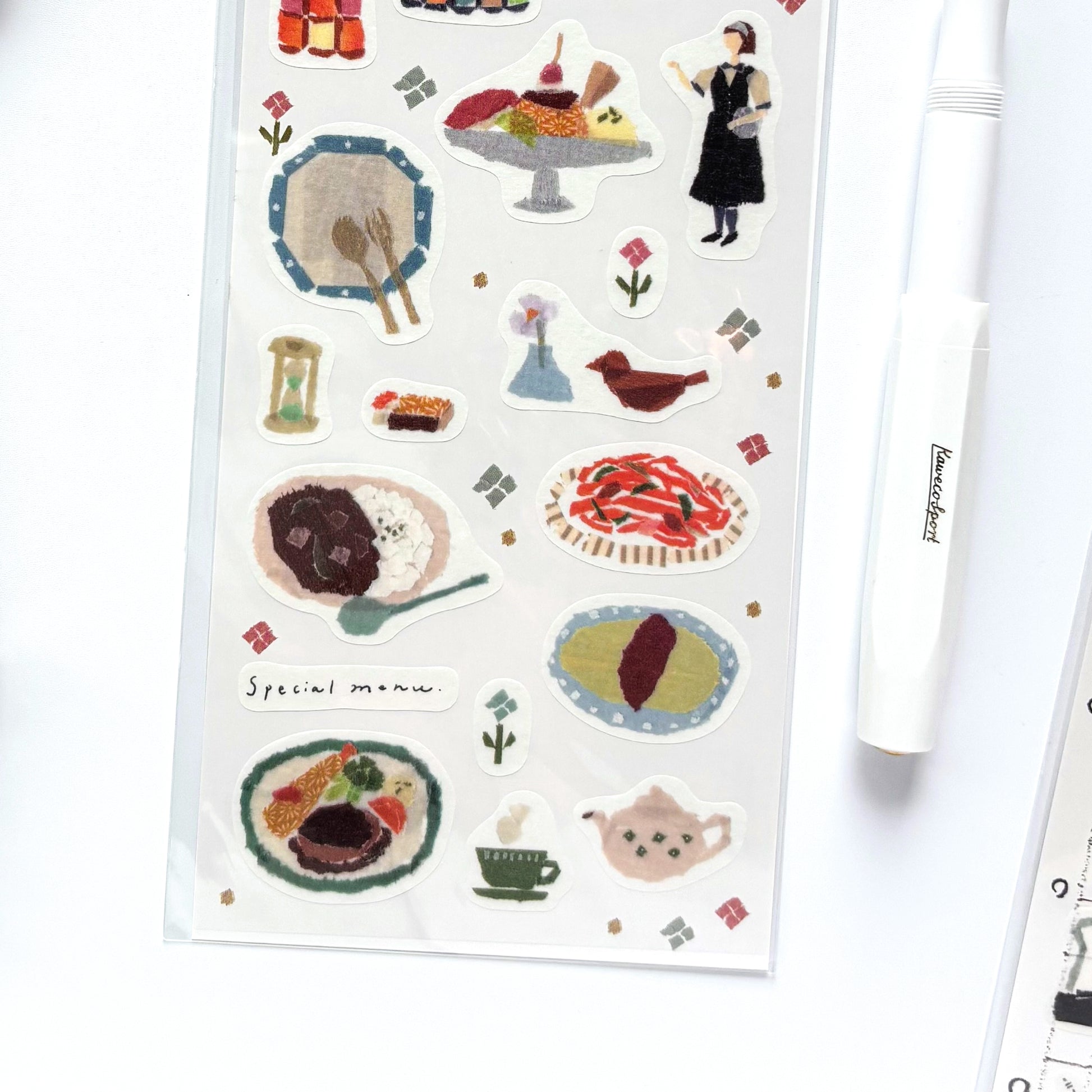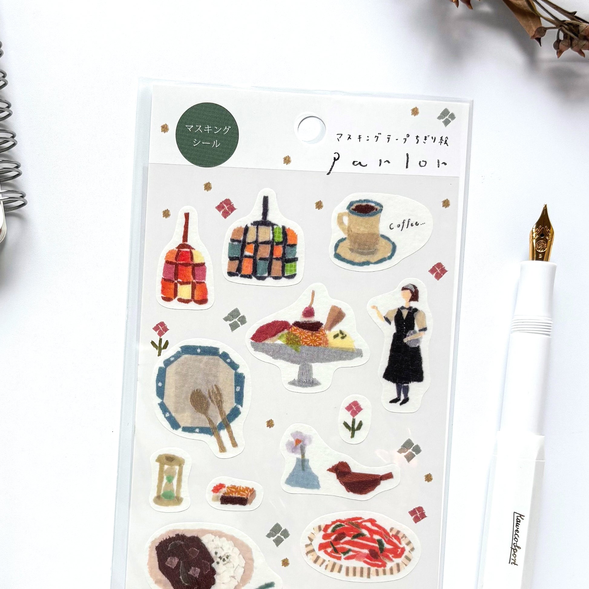 マスキングテープちぎり絵作家・田村美紀さんがデザインした「My Favorite」シリーズの箔押しシールです。マスキングテープをちぎって重ねることで、光や陰影、質感を表現する独自の技法で作品を制作しています。それぞれのステッカーをじっくりご覧いただくと、ちぎったマスキングテープを巧みに重ねて描かれたデザインの魅力をお楽しみいただけます。
