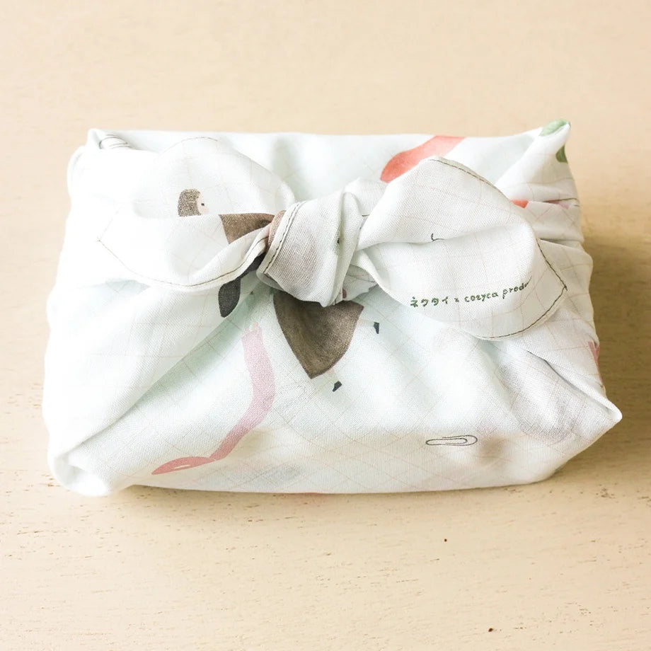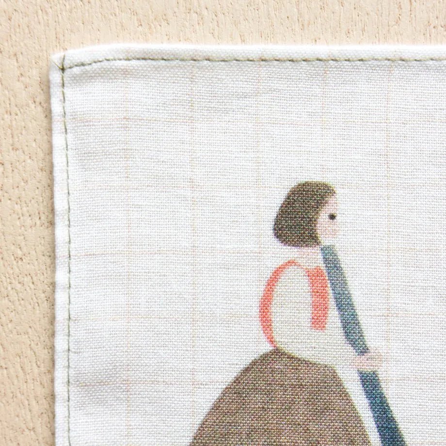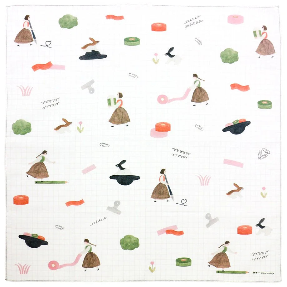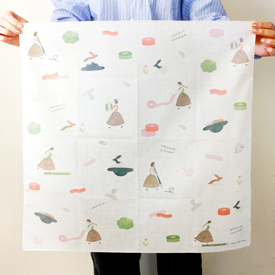 どこか懐かしく親しみを感じる世界を描く北海道を拠点に活動するイラストレーターユニット「ネクタイ」さんによるおしゃれな大判ハンカチ。薄手で柔らかい素材のため、持ち歩きや物を包むのにも便利。贈り物にもぜひどうぞ。