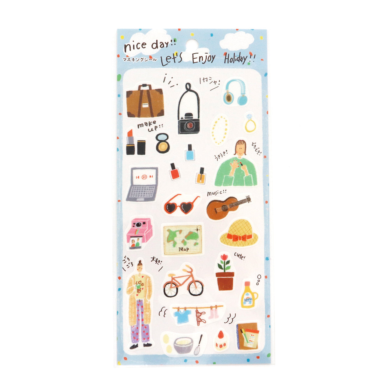 These stickers are from "Nice Day" series designed by a Japanese artist Tomatomayu known for her "hokkori" ("heartwarming" in Japanese) illustrations. Great for your planner and journal decoration.