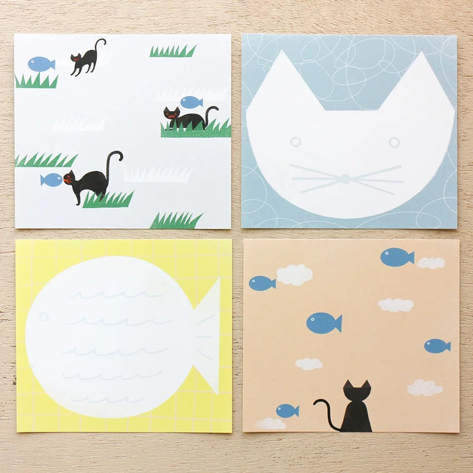 Nishi Shuku Square Memo Pad - Cat & Fish