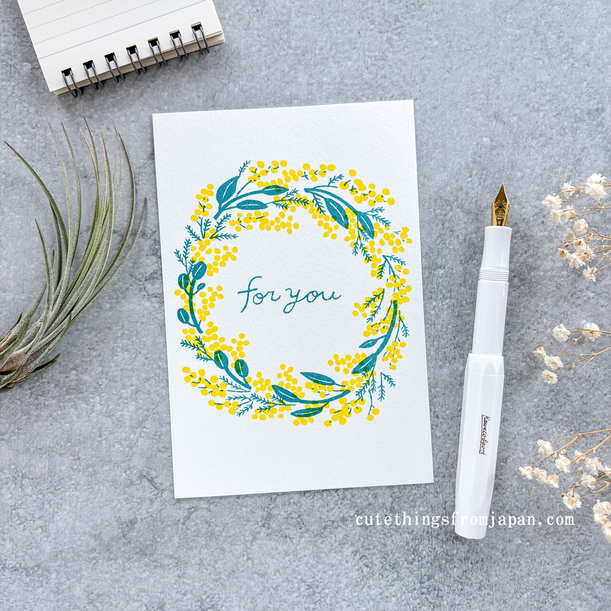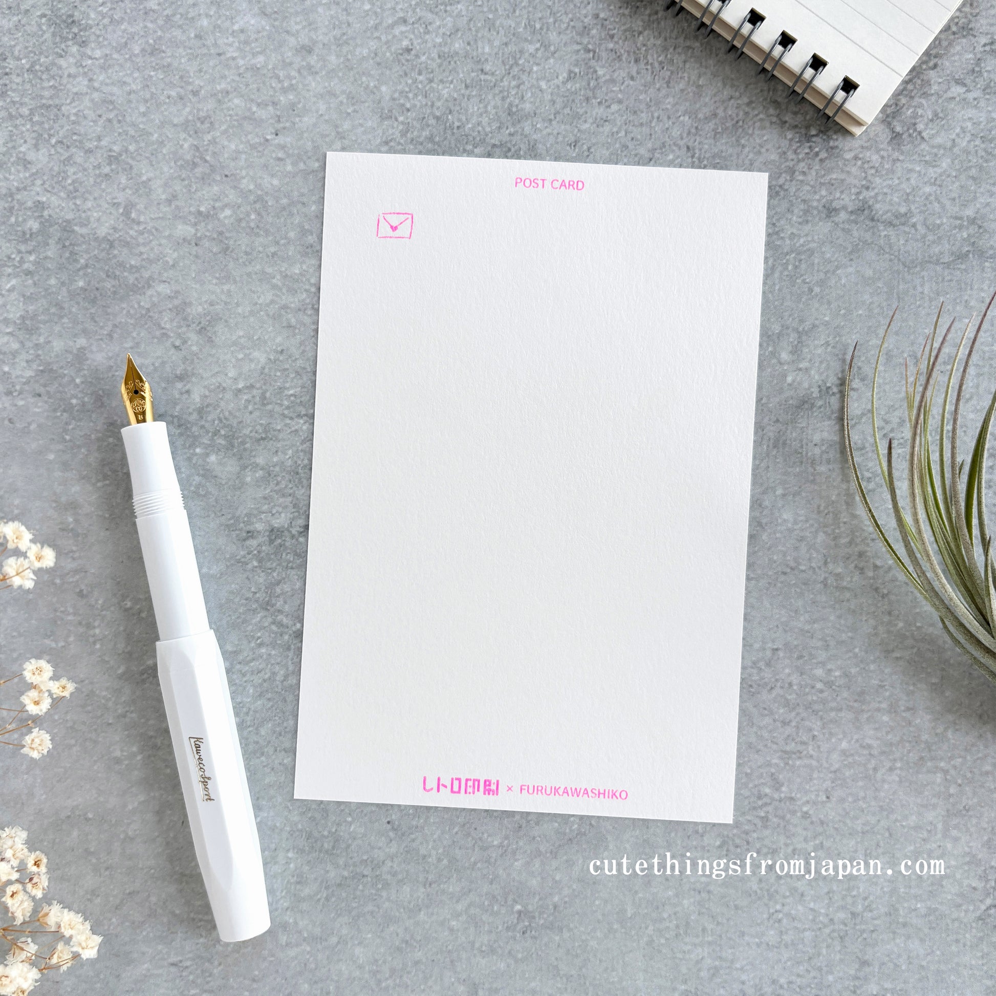 Cute postcard by a unique printing technique called risograph. Unlike regular printing, it is done one color at a time, resulting in unexpected and charming misprints, also known as "aji" or "fun taste" in Japanese. Enjoy this fun and distinctive feature in this retro-style postcard.