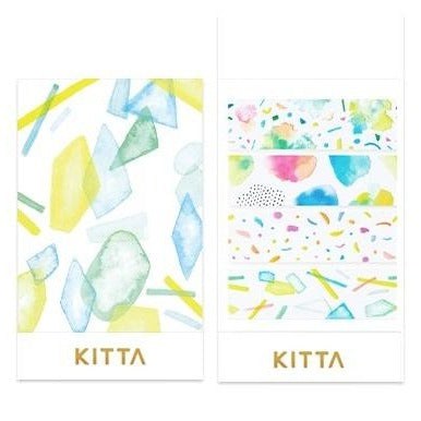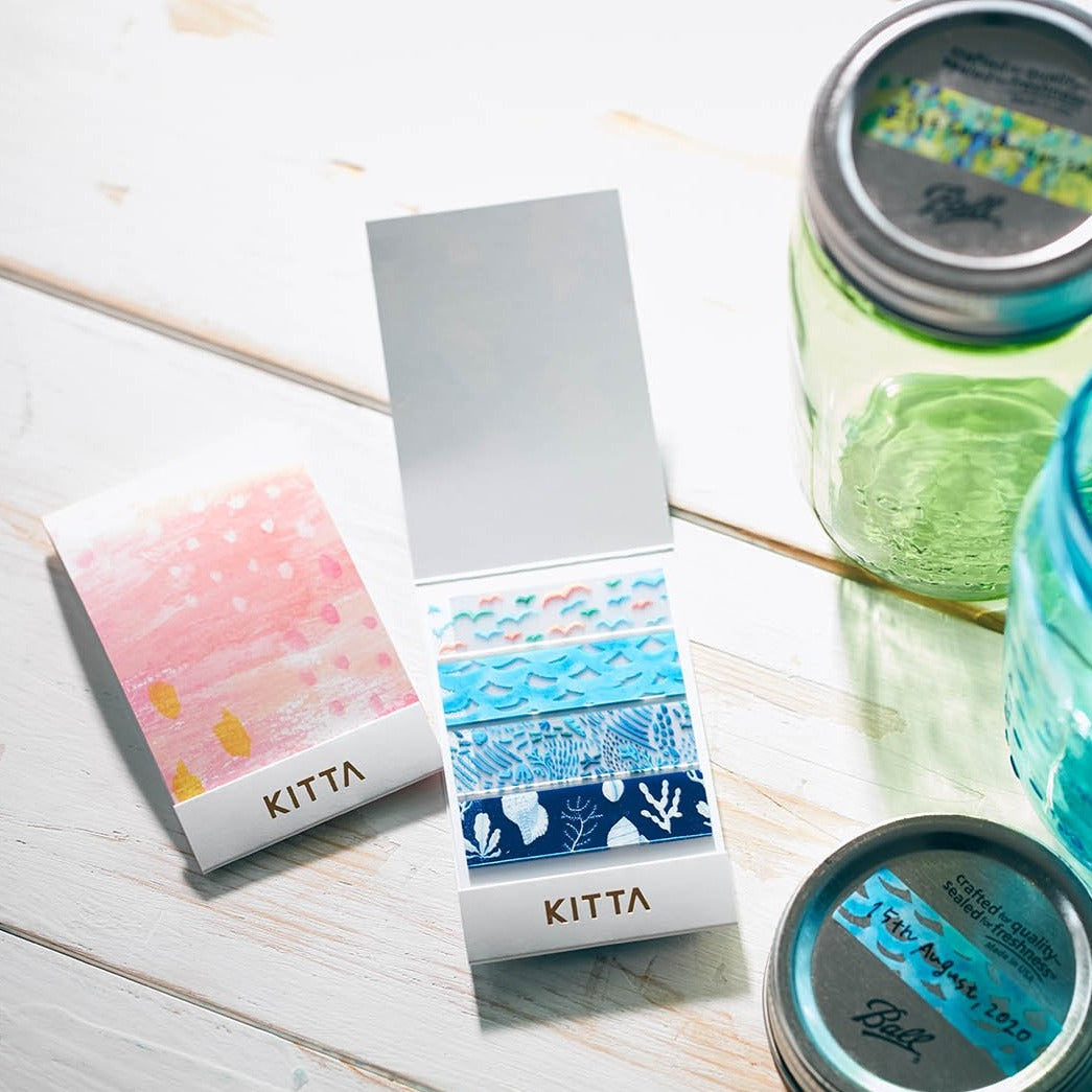 This is a new series "KITTA CLEAR" from KITTA series, handy portable planner sticker set in a beautiful package. The beautiful watercolor design is by a Japanese illustrator Keina Higashide. These are clear film stickers that can be removed and repositioned like washi tape. Each sticker is pre-cut to 5cm long of 4 different designs (10 pieces per designs). You can tuck the cover in the bottom (the white area that says KITTA) to keep it closed.
