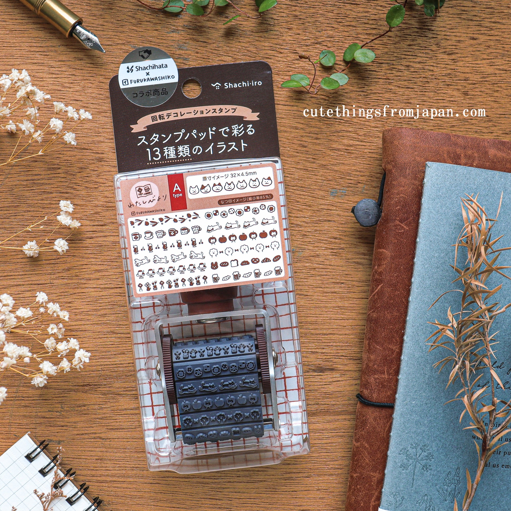 This is a cute rotating stamp by Shachihata in collaboration with Furukawa Paper known for their cute cozy illustrations! The stamp comes with 13 different designs, so it is like a 13 stamps in one! Great for planner and journal decoration. By rotating the dial on the side, you can change the design.
