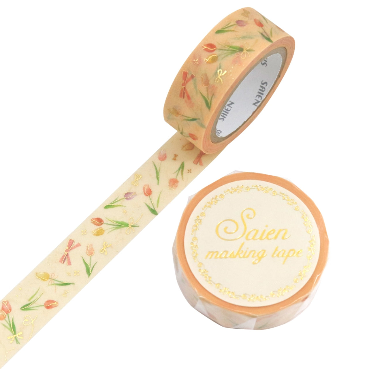 Add some fun to your planner with this cute tulip washi tape! The design features delicate gold foil-stamped accents that shimmer beautifully when they catch the light.