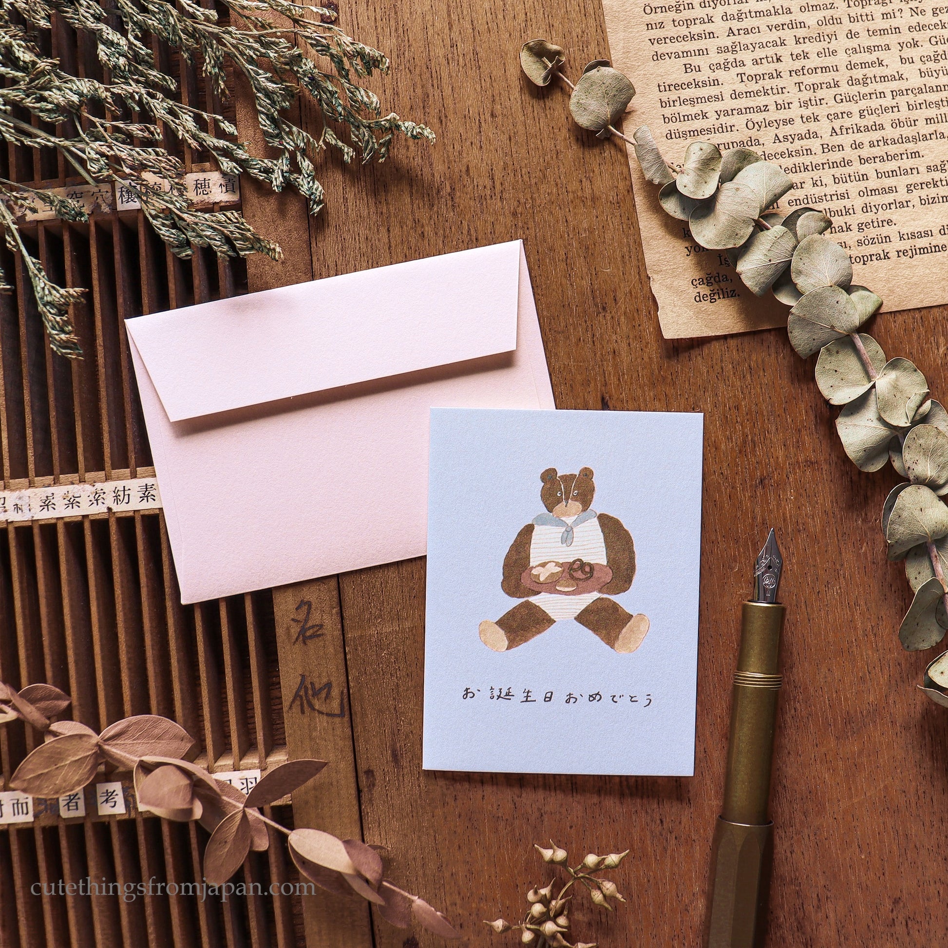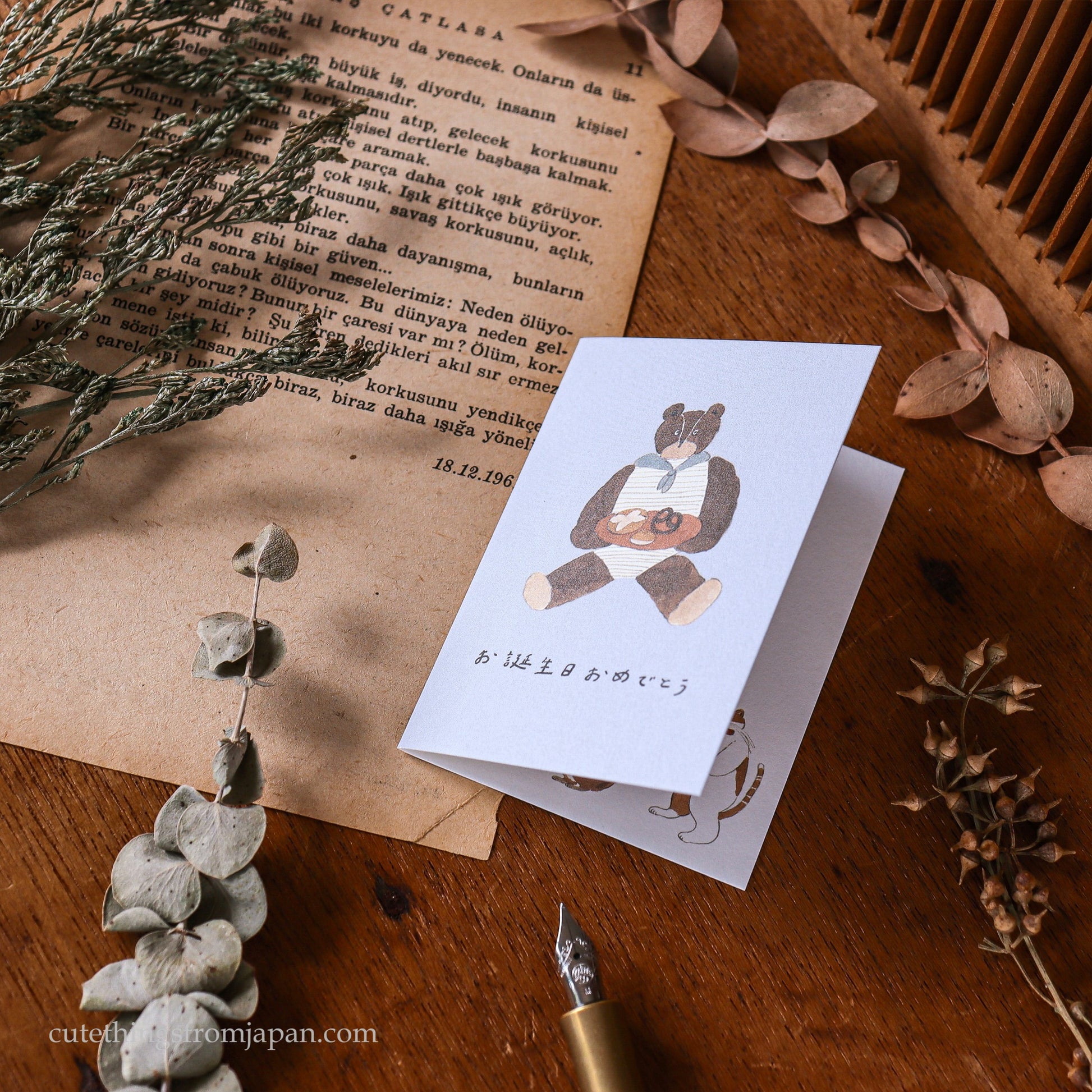Adorable mini Happy Birthday card designed by Japanese illustrator Shoichiro Tobimatsu known for his fun cozy illustrations. His cozy illustrations bring a unique charm to the card. It comes with an matching size envelope.