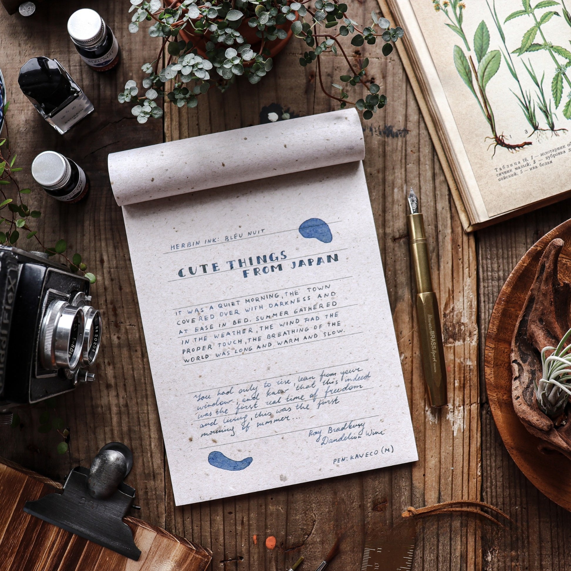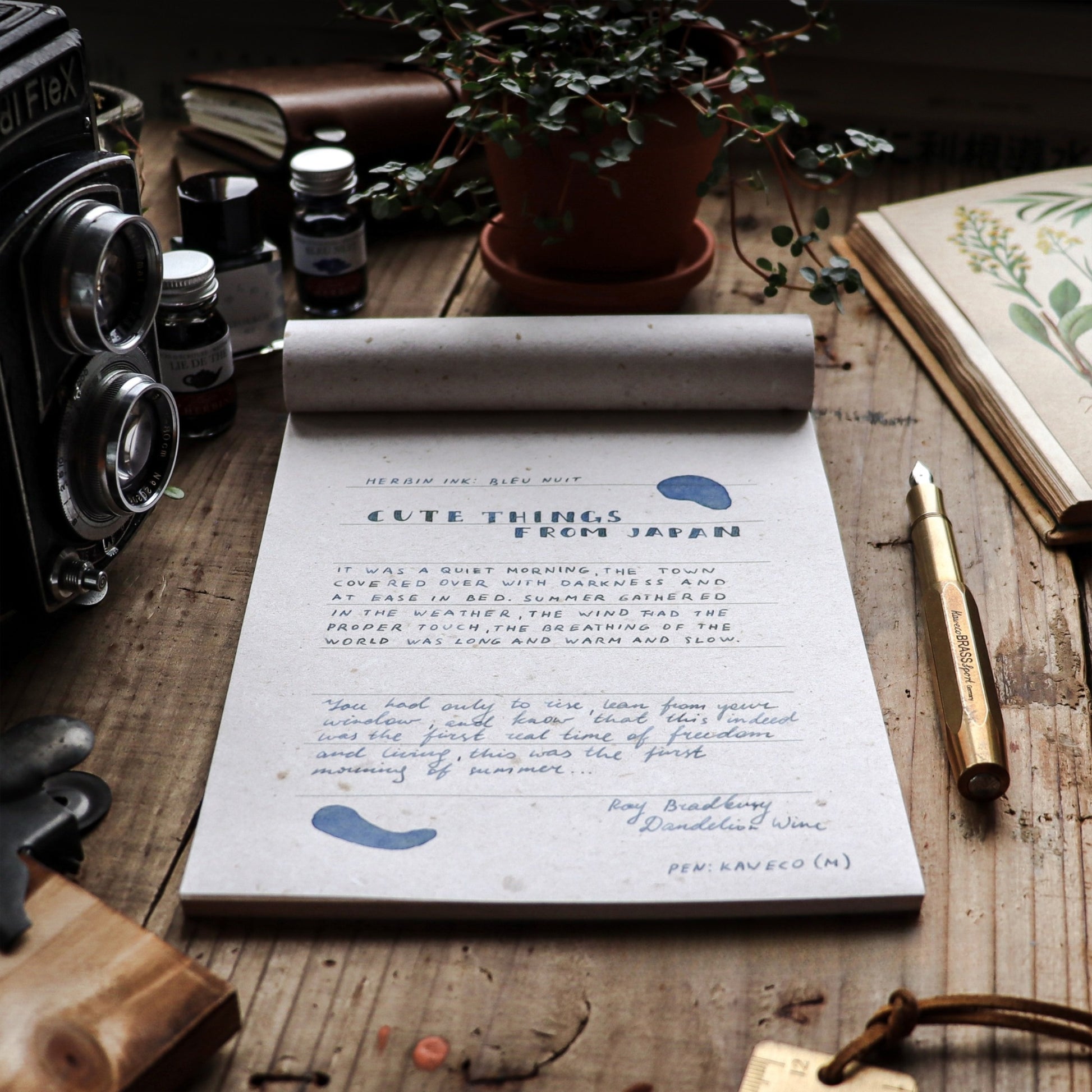 Despite being recycled, Yoshikawa Paper maintains a high standard of quality, ensuring that the washi paper used in the production is still exceptional. This eco-friendly note pad offers a smooth and enjoyable writing experience, without the traditional issues often associated with washi paper when used with today's writing tools. With one side featuring visible fibers and the other showcasing a distinct texture, this note pad truly highlights the versatility