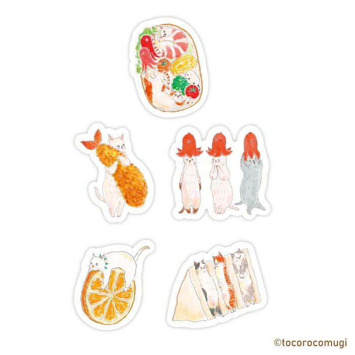 This pack includes 20 adorable sticker flakes featuring cute cats by Japanese artist Tocorocomugi known for her fun and cute animal illustrations. Made with Japanese Mino washi paper.