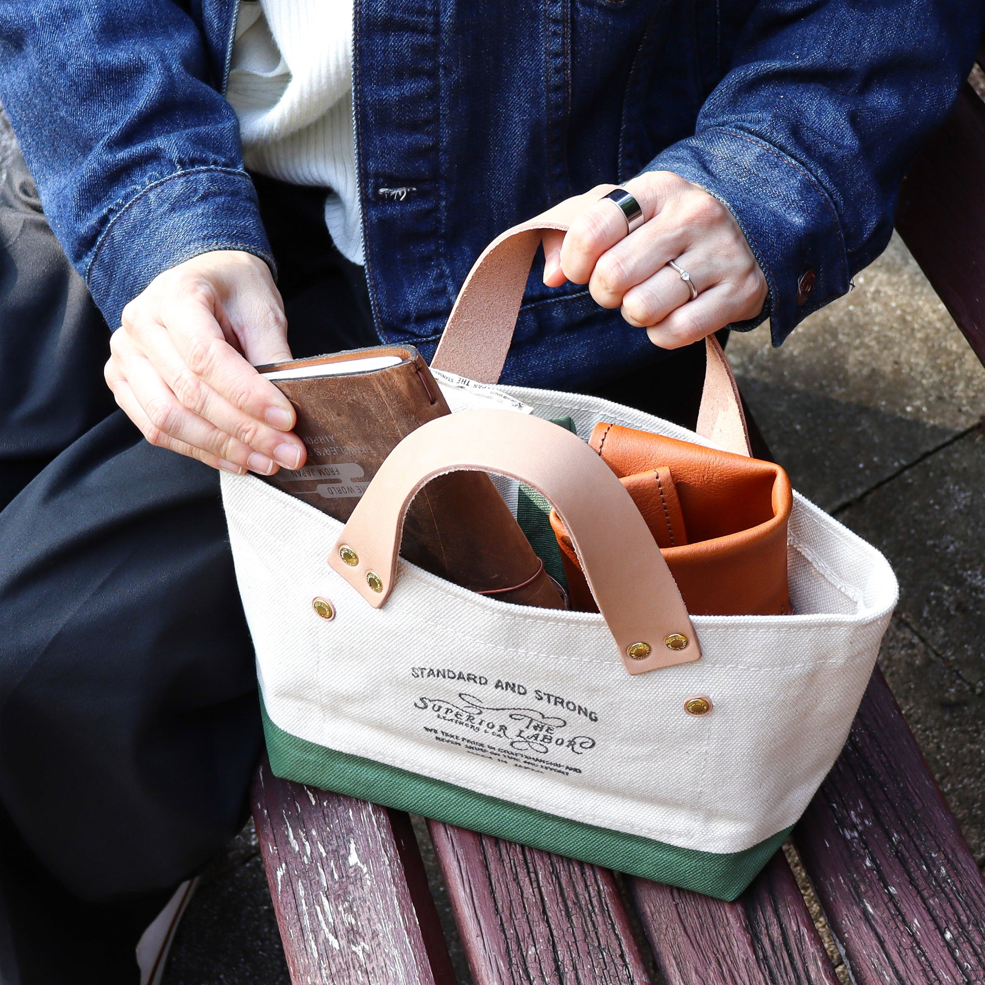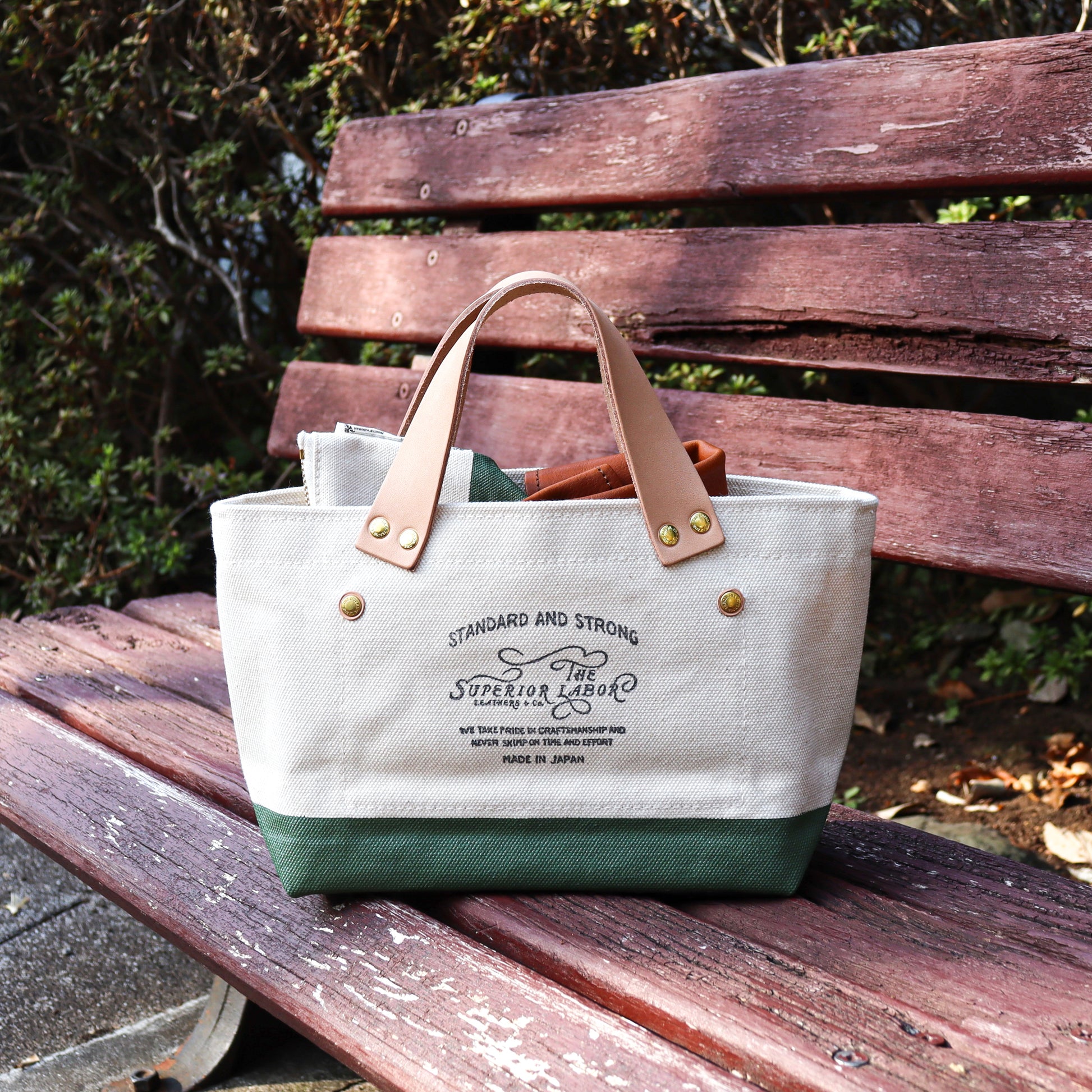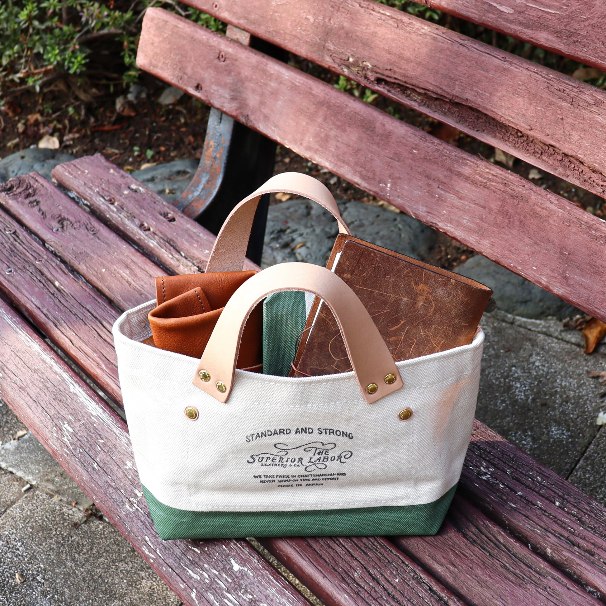岡山を拠点に、高品質なレザーとキャンバス製品を手がけるTHE SUPERIOR LABORさんによって丁寧に仕立てられた「エンジニアバッグ プチ」です。