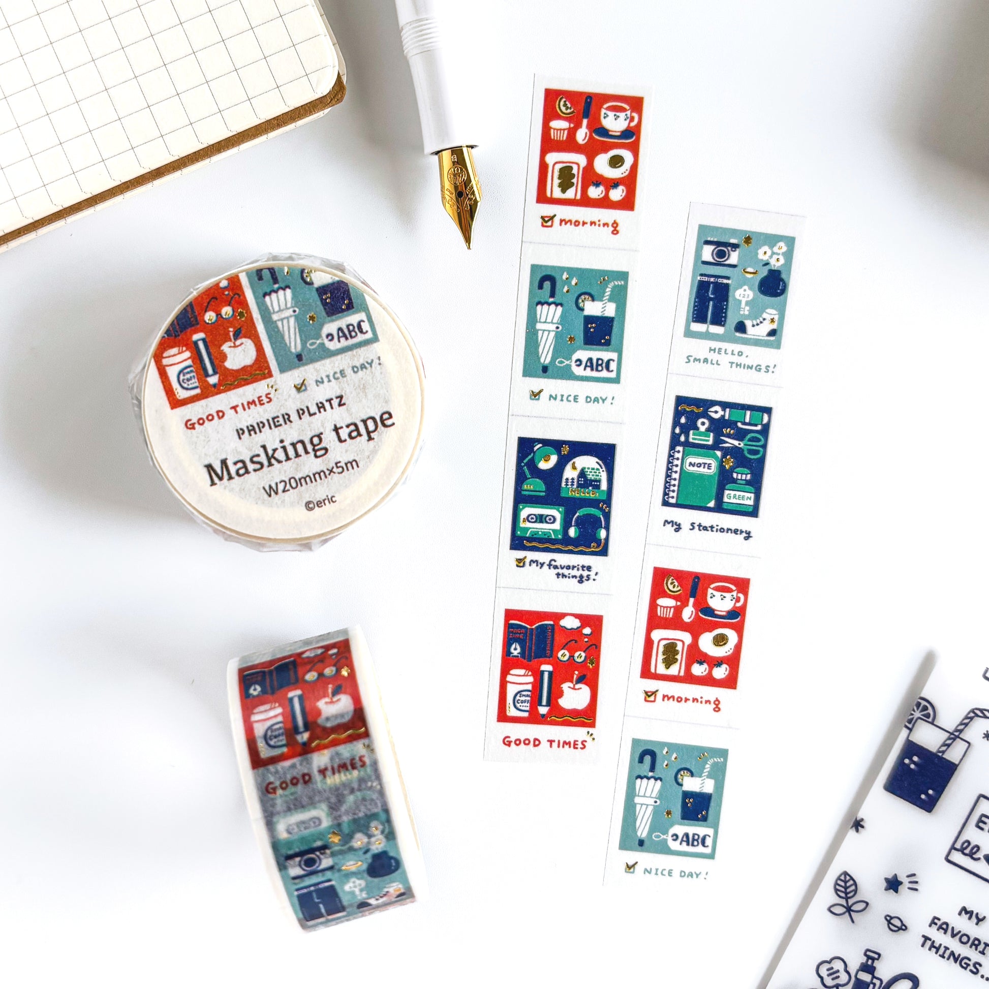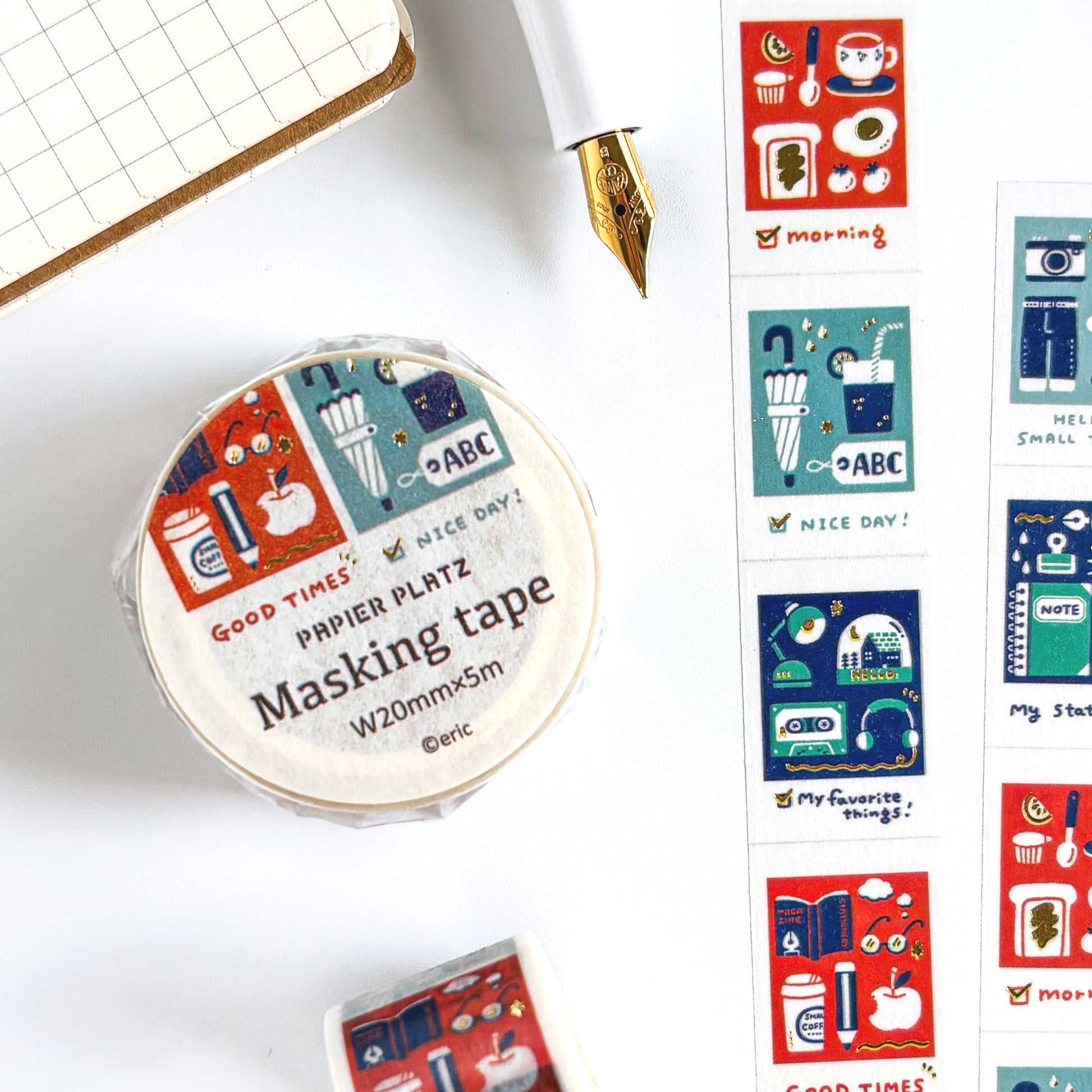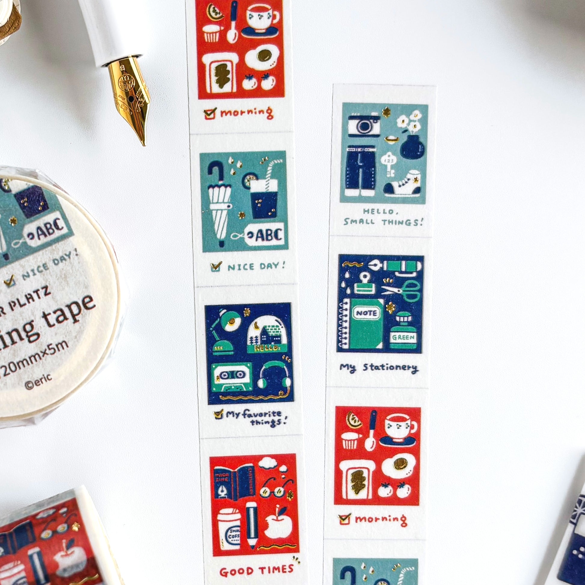 消しゴムはんこ作家ericさんデザインの箔押しが素敵なマスキングテープです。手帳やノートのデコレーションにぜひお楽しみください。