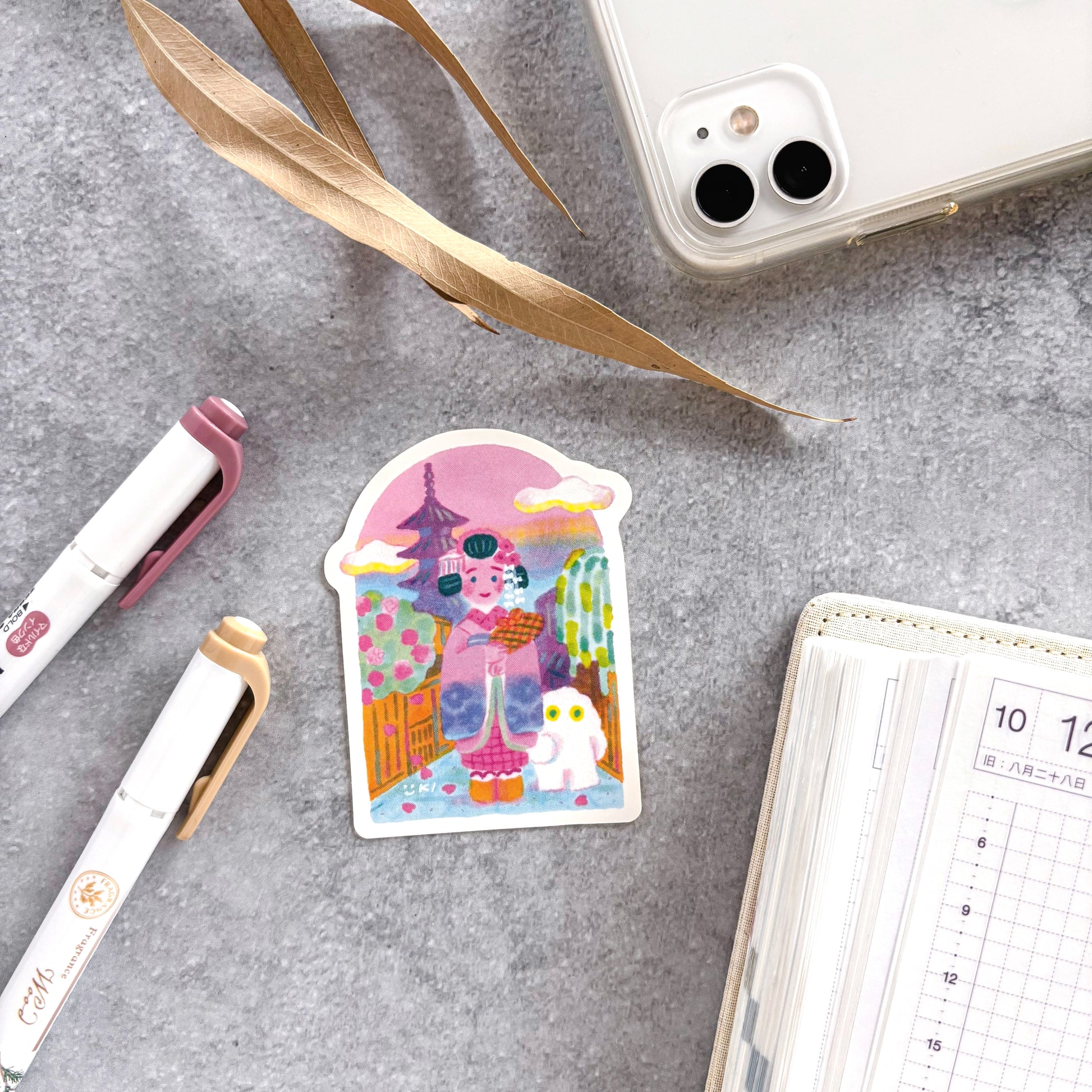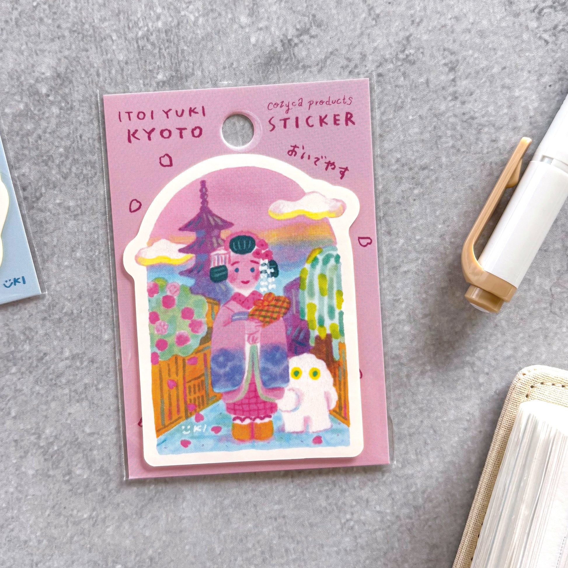 イラストレーター・いとい ゆきさんデザインの京都をモチーフにした可愛いステッカー。耐水・耐光ステッカーのため、スーツケースやスマホケースにも貼ってお楽しみいただけます。