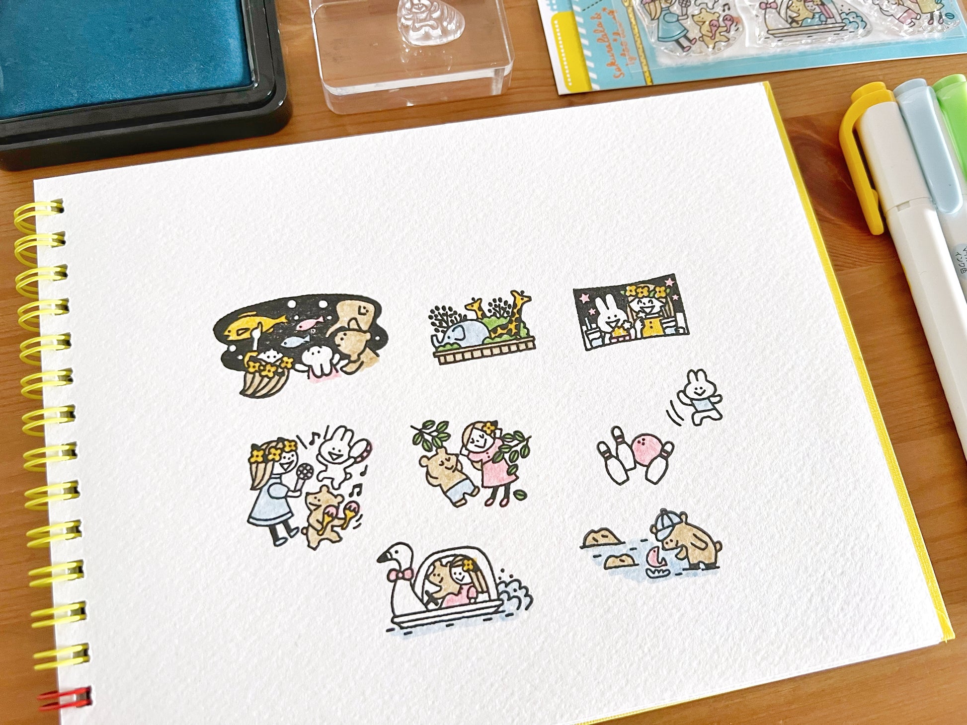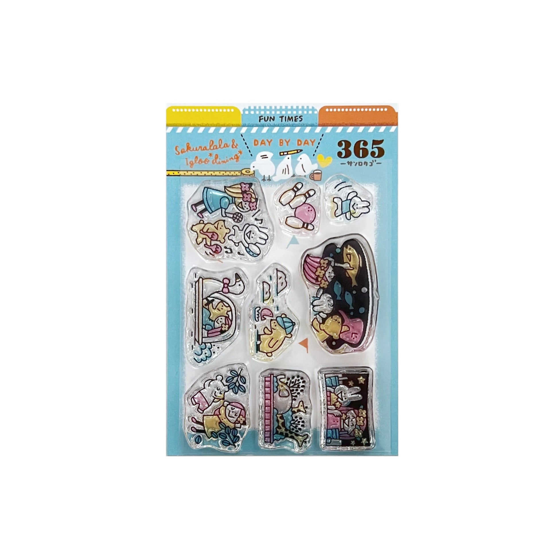 Sakuralala x Igloo Dining collaboration clear photopolymer stamps in 3" x 4" size from 365 "Day by Day" series are perfect for decorating your planner, journal, card, letter and lots more! Igloo Dining is a Japanese illustrator whose illustration theme is to enjoy little things in everyday life. This is the 3" x 4" size sheet size. You can cut the top part to use as a tab to organize them when stored.