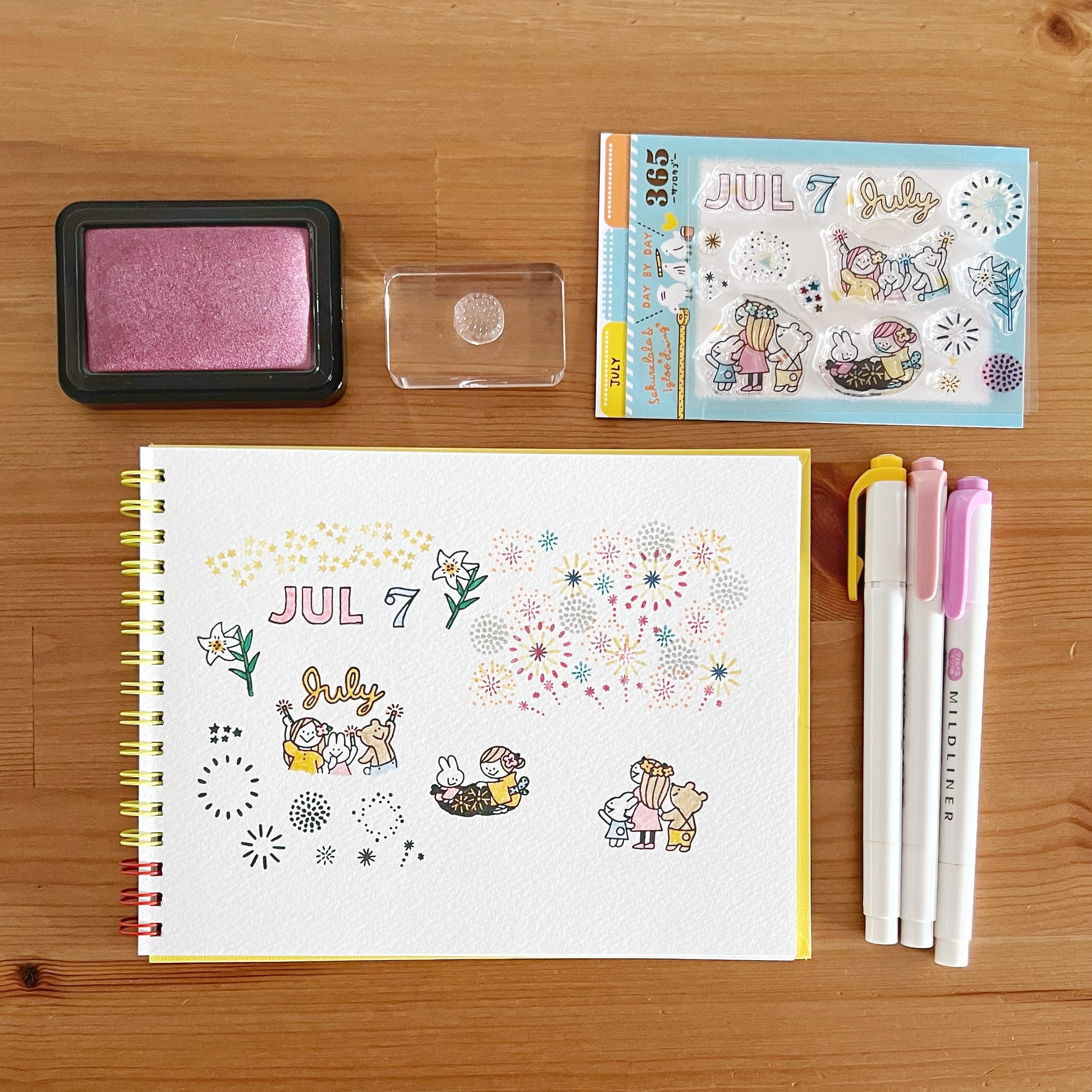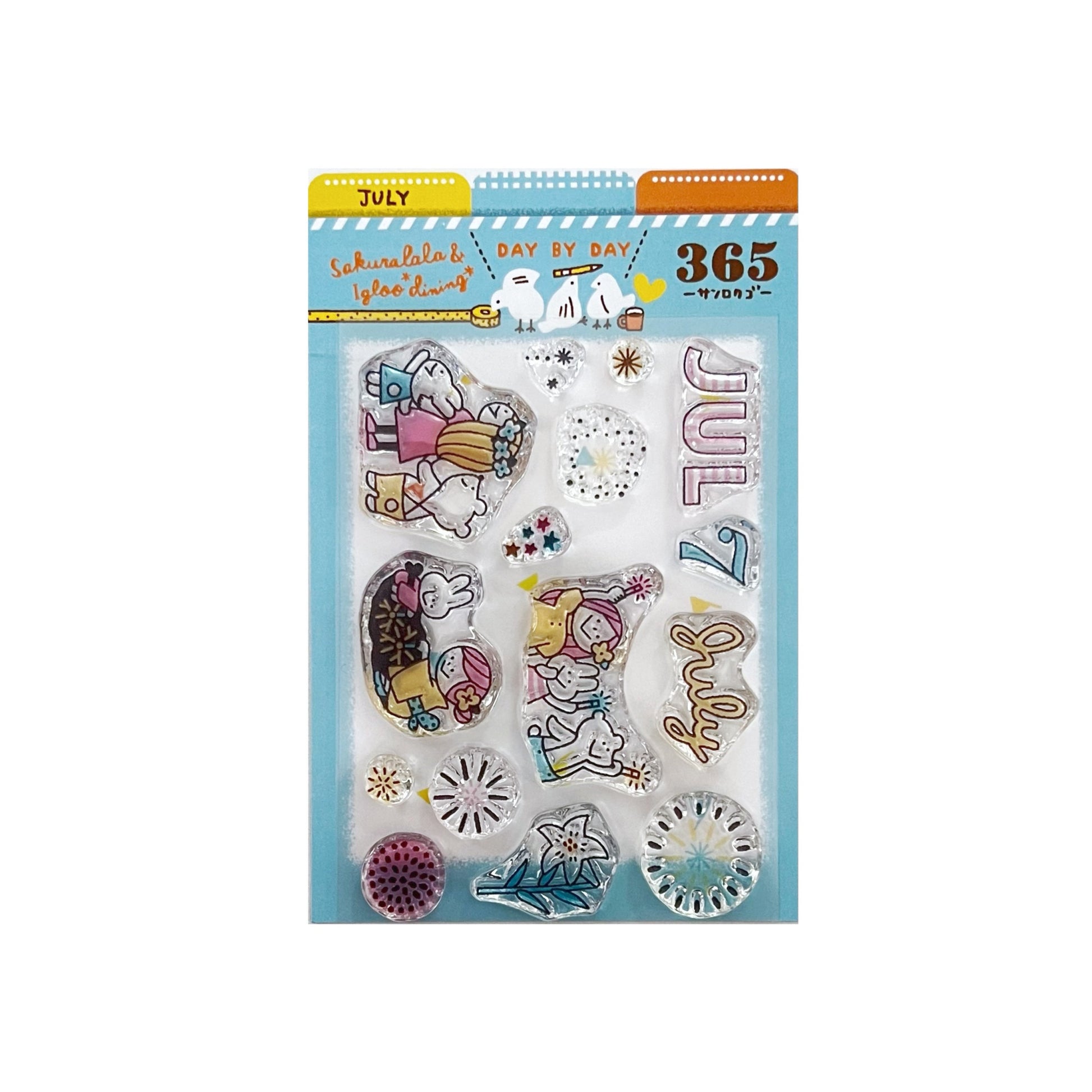 New Sakuralala x Igloo Dining collaboration clear photopolymer stamps in 3" x 4" size from 365 "Day by Day" series are perfect for decorating your planner, journal, card, letter and lots more! Igloo Dining is a Japanese illustrator whose illustration theme is to enjoy little things in everyday life. This is the 3" x 4" size sheet size. You can cut the top part to use as a tab to organize them when stored.