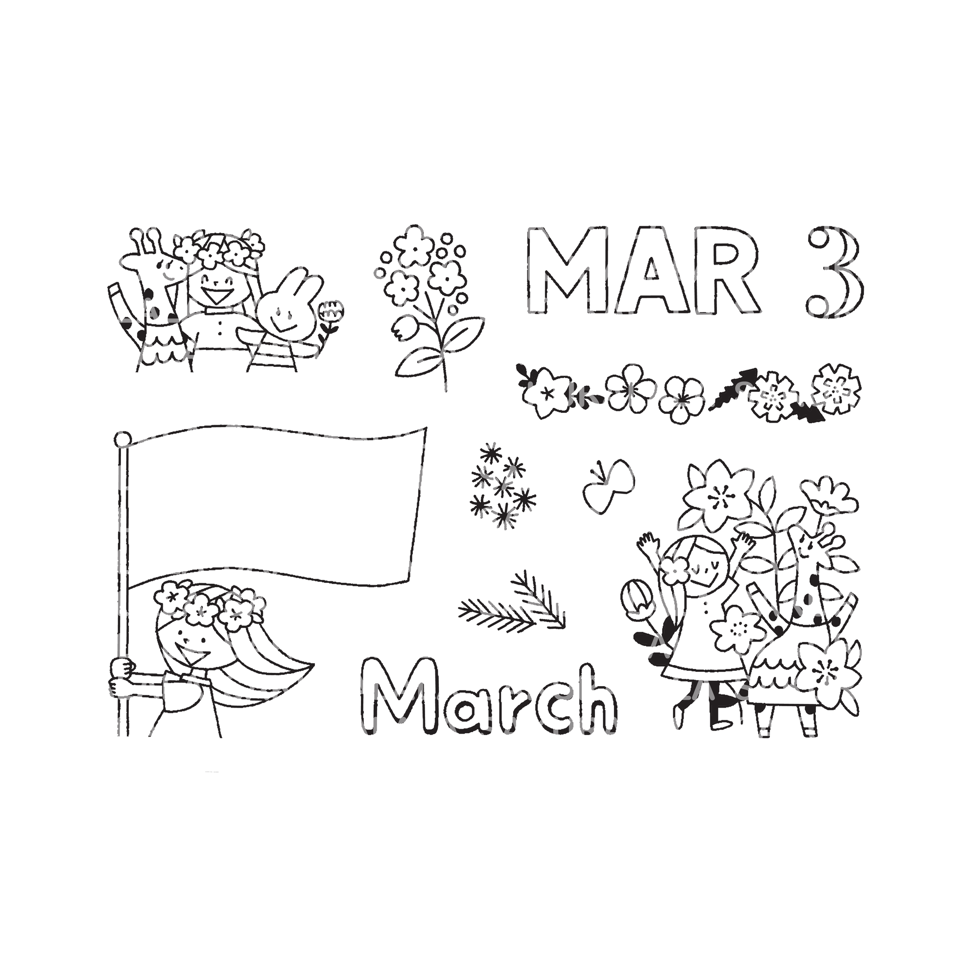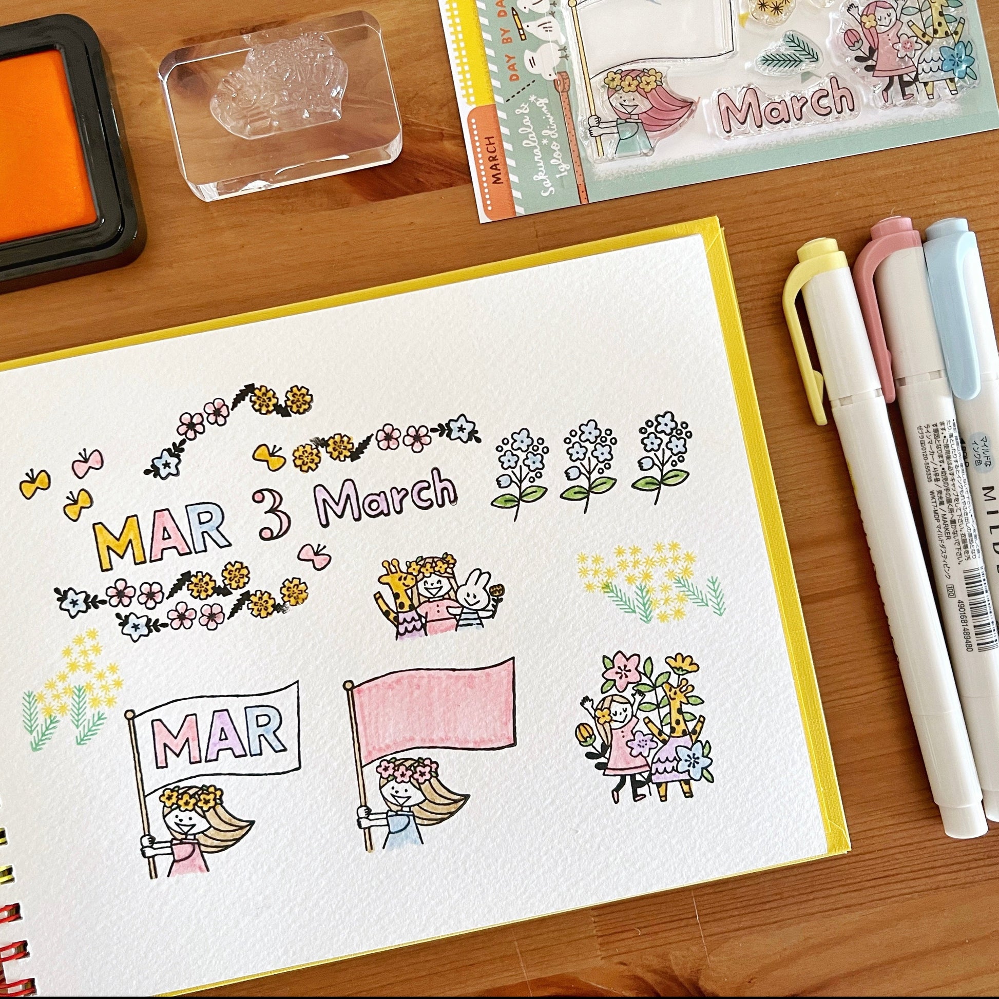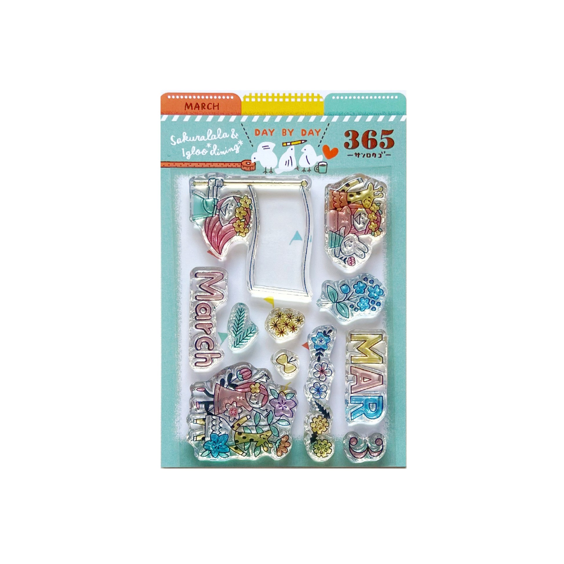 Sakuralala x Igloo Dining collaboration clear photopolymer stamps in 3" x 4" size from 365 "Day by Day" series are perfect for decorating your planner, journal, card, letter and lots more! Igloo Dining is a Japanese illustrator whose illustration theme is to enjoy little things in everyday life. This is the 3" x 4" size sheet size. You can cut the top part to use as a tab to organize them when stored.