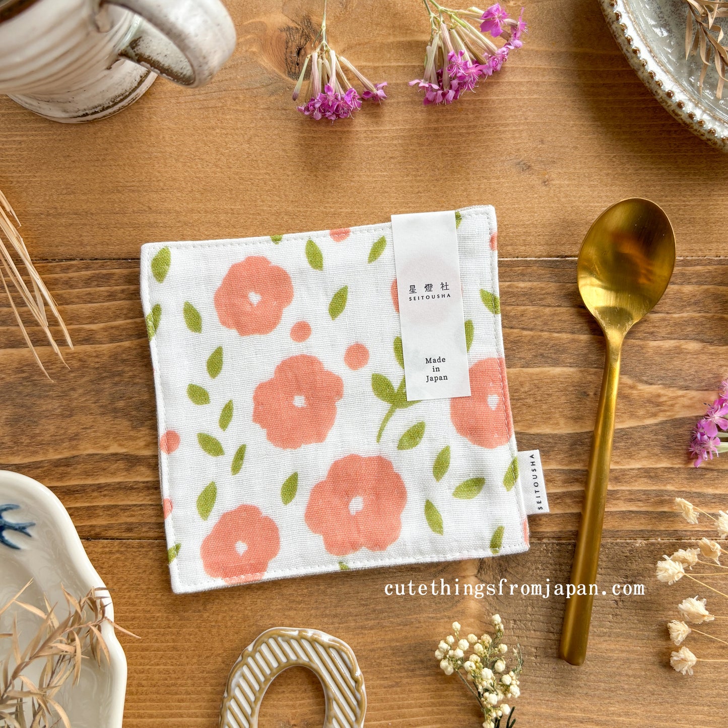 This is a lovely cotton square coaster made with 100% natural materials, perfect for your cozy tea or coffee breaks. It's easy to wash and can be reused multiple times, making it an eco-friendly choice.
