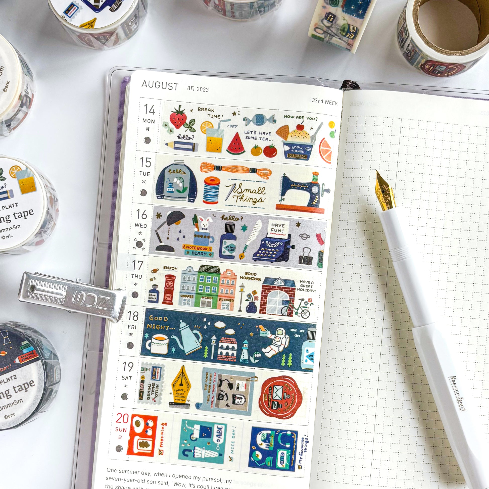 Cute washi tape designed by Japanese eraser stamp artist eric, known for her fun and charming illustrations, perfect for decorating your planner or journal! Parts of the tape are hot-stamped, giving them a beautiful shine when they catch the light.