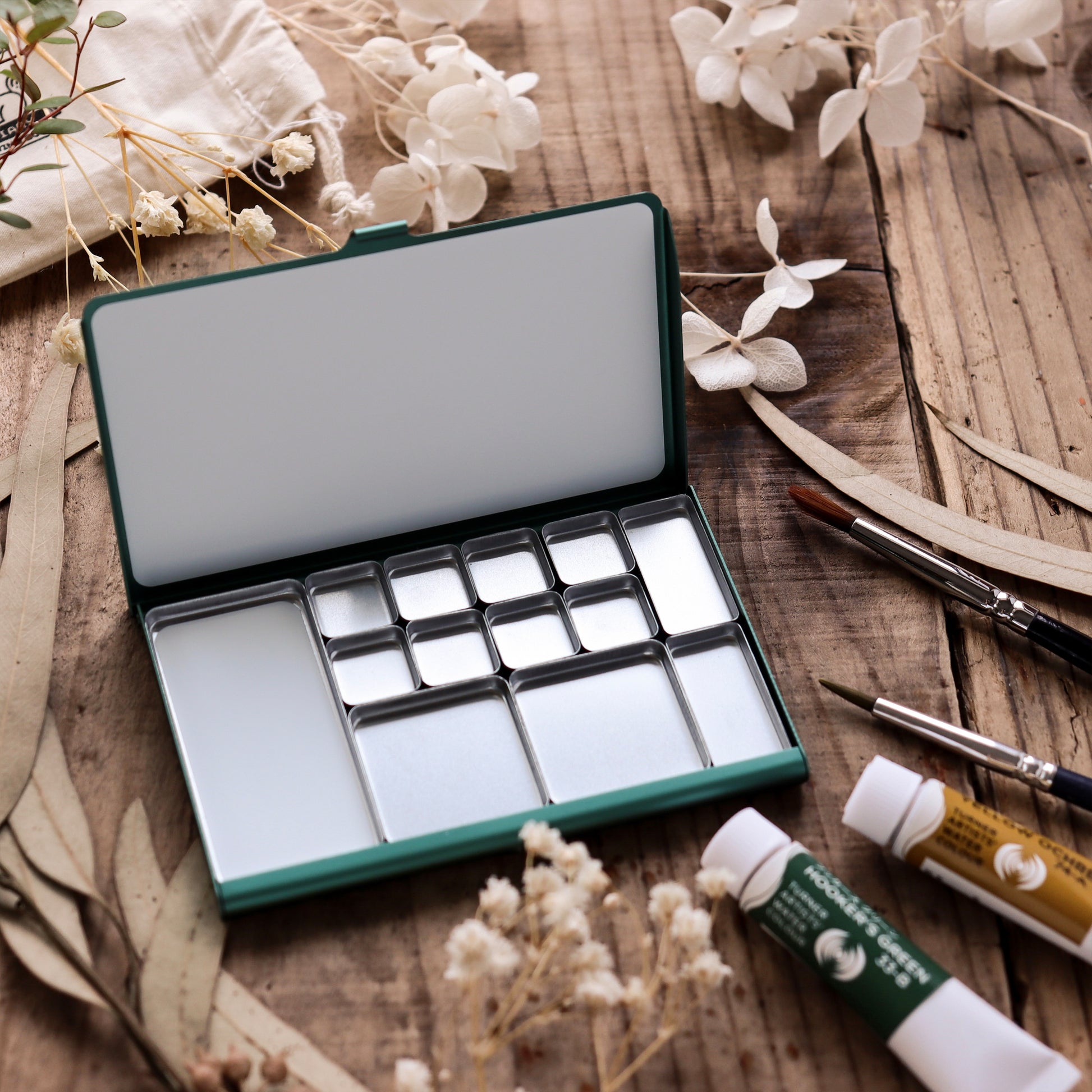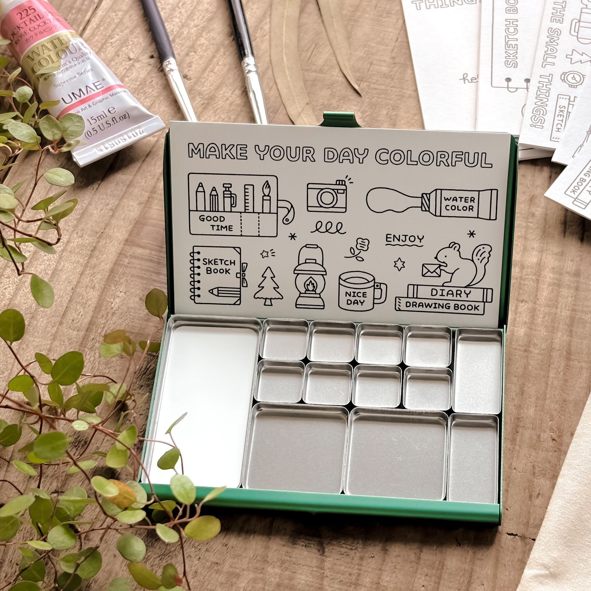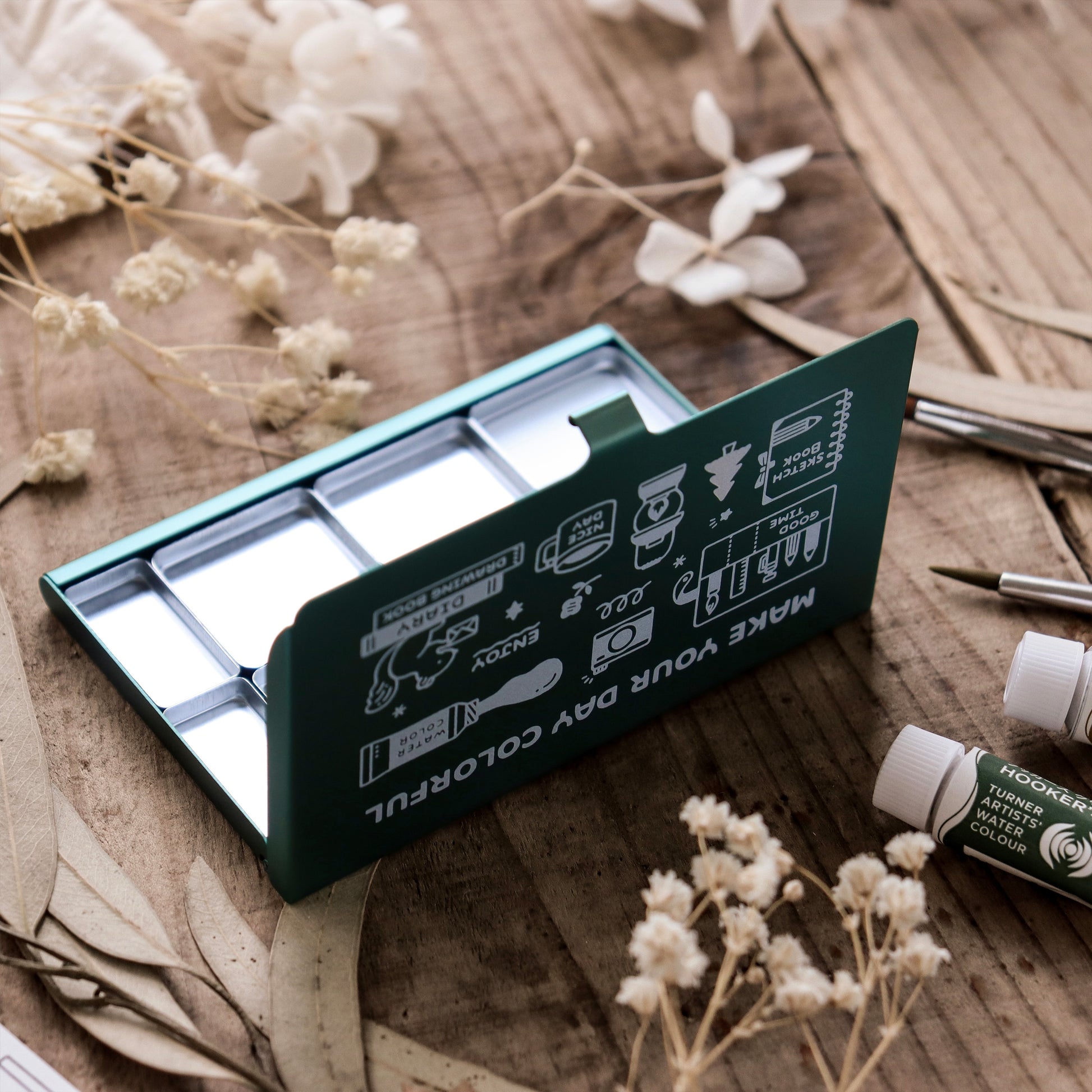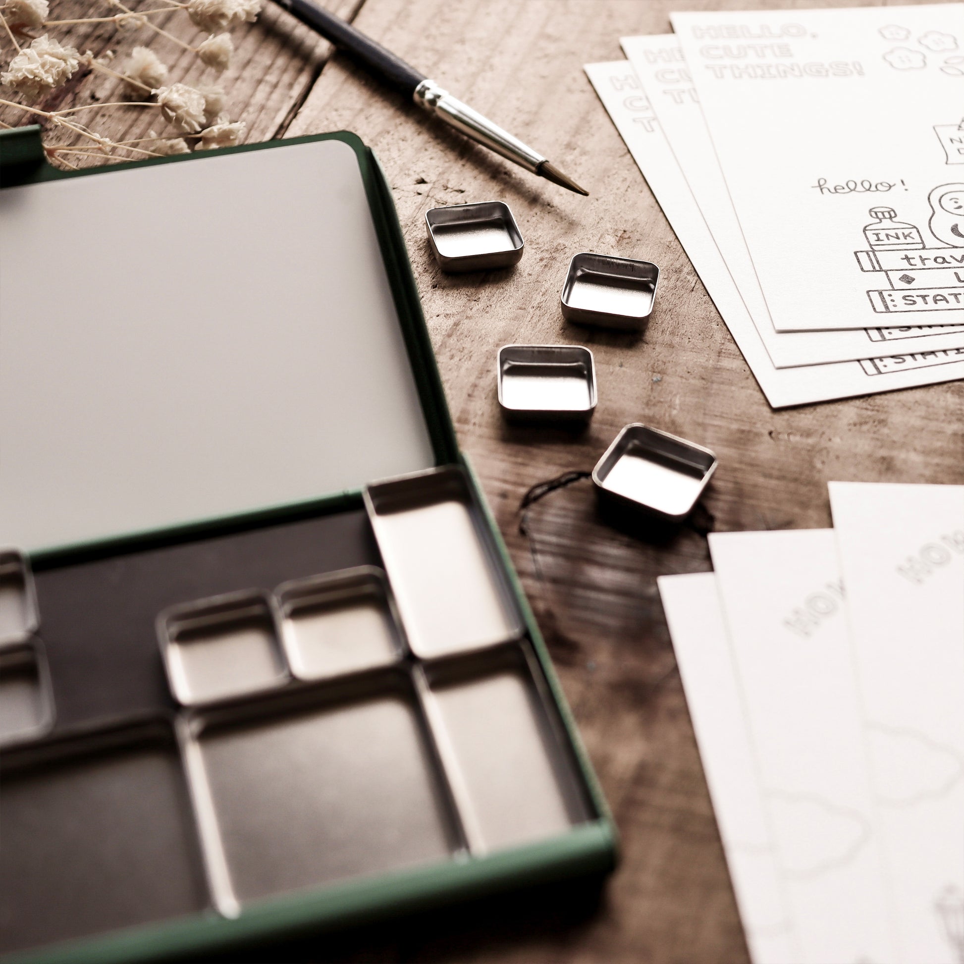 We created this adorable Art Tool Kit palette in collaboration with the talented artist eric as part of our 10th Anniversary project! This handy, rust-proof aluminum case features a hinged lid and magnetic base to keep the stainless steel watercolor pans securely in place.