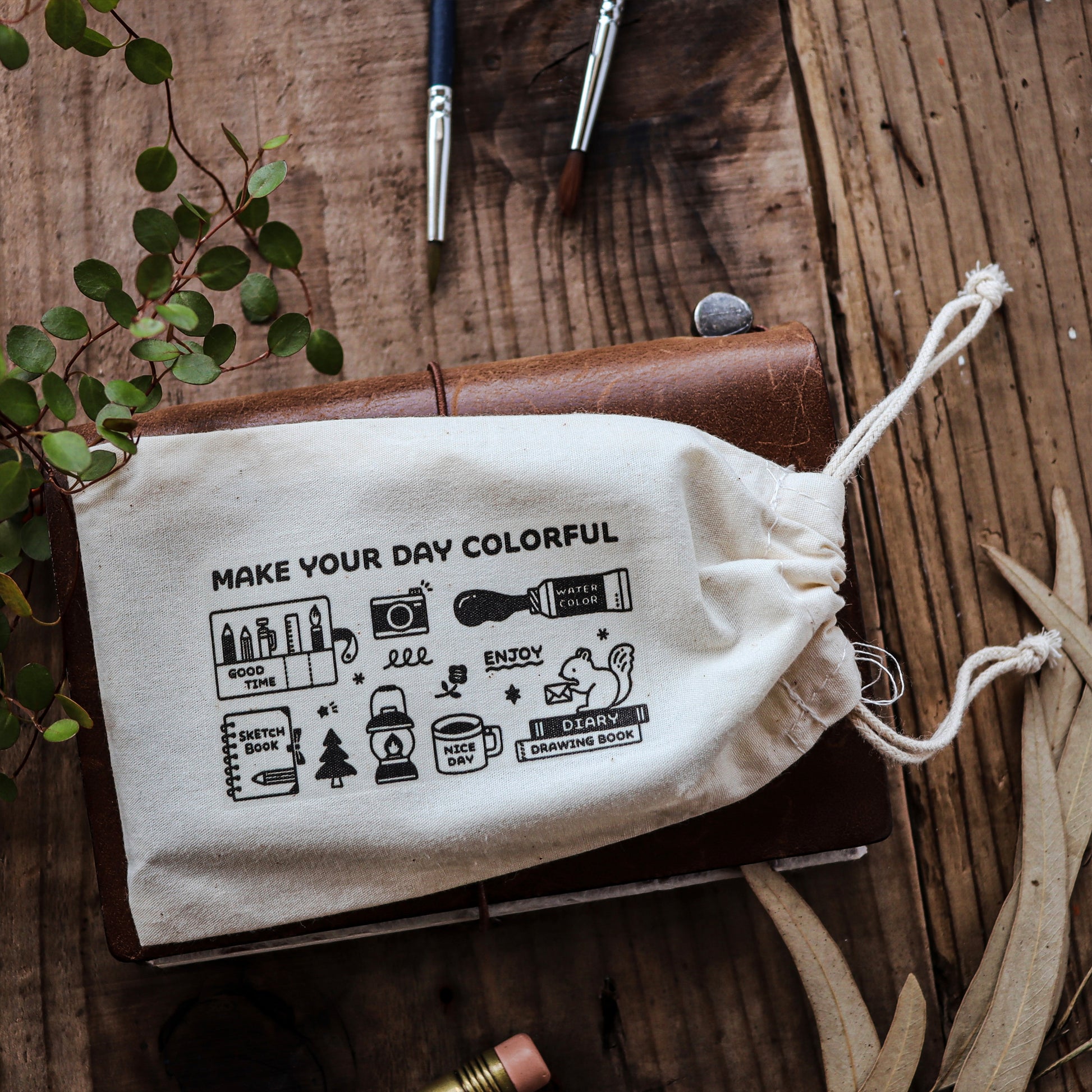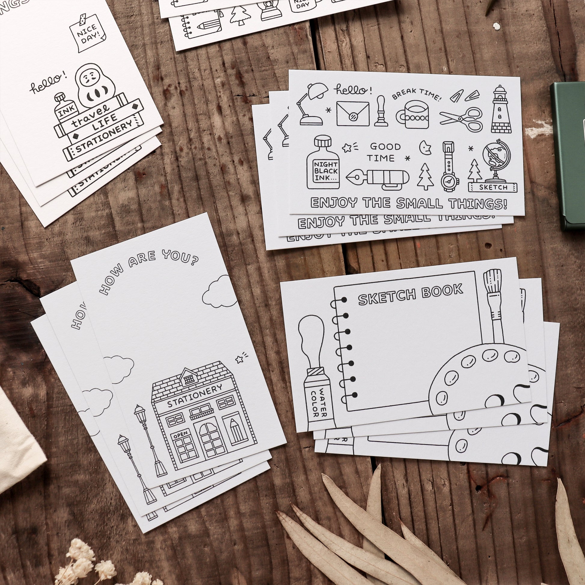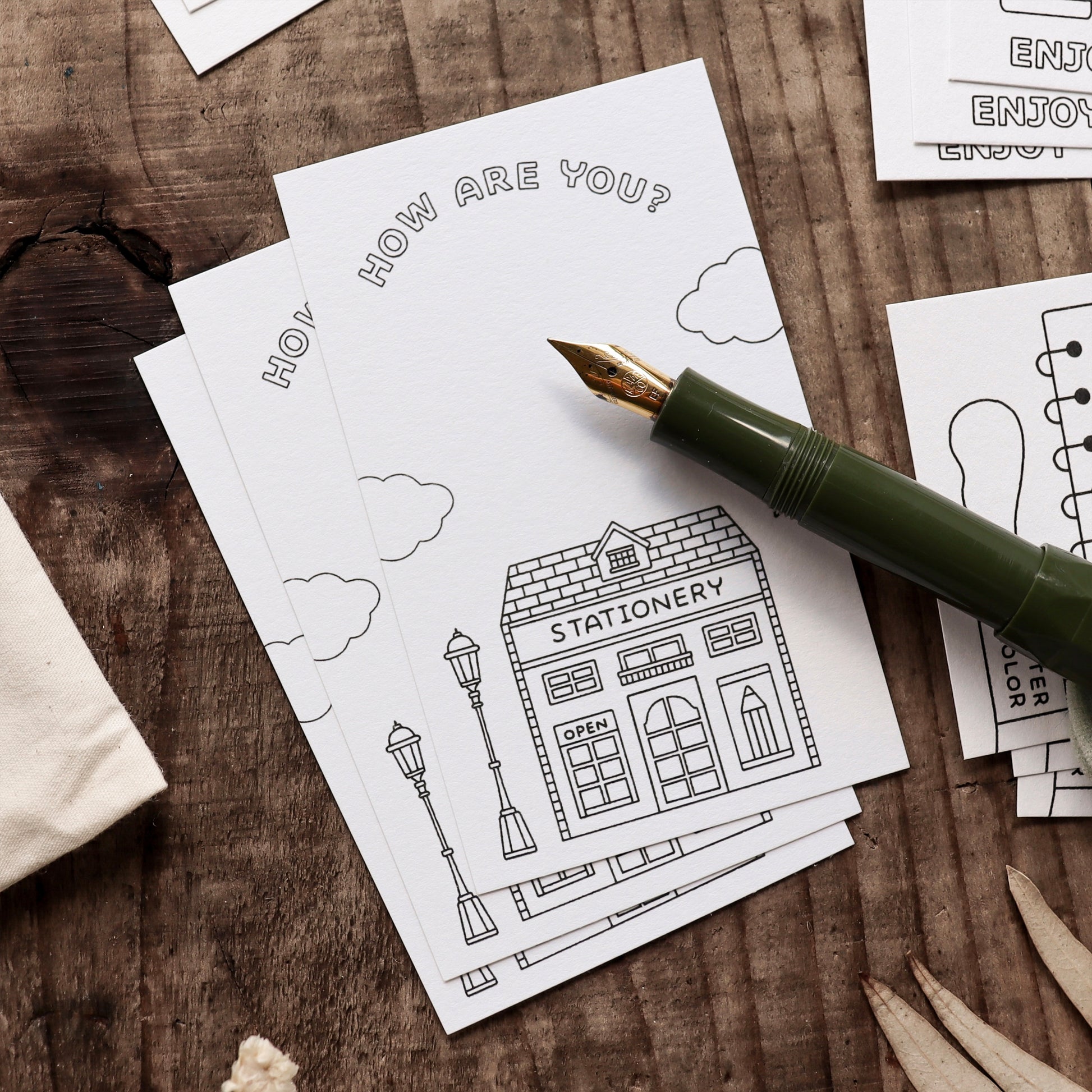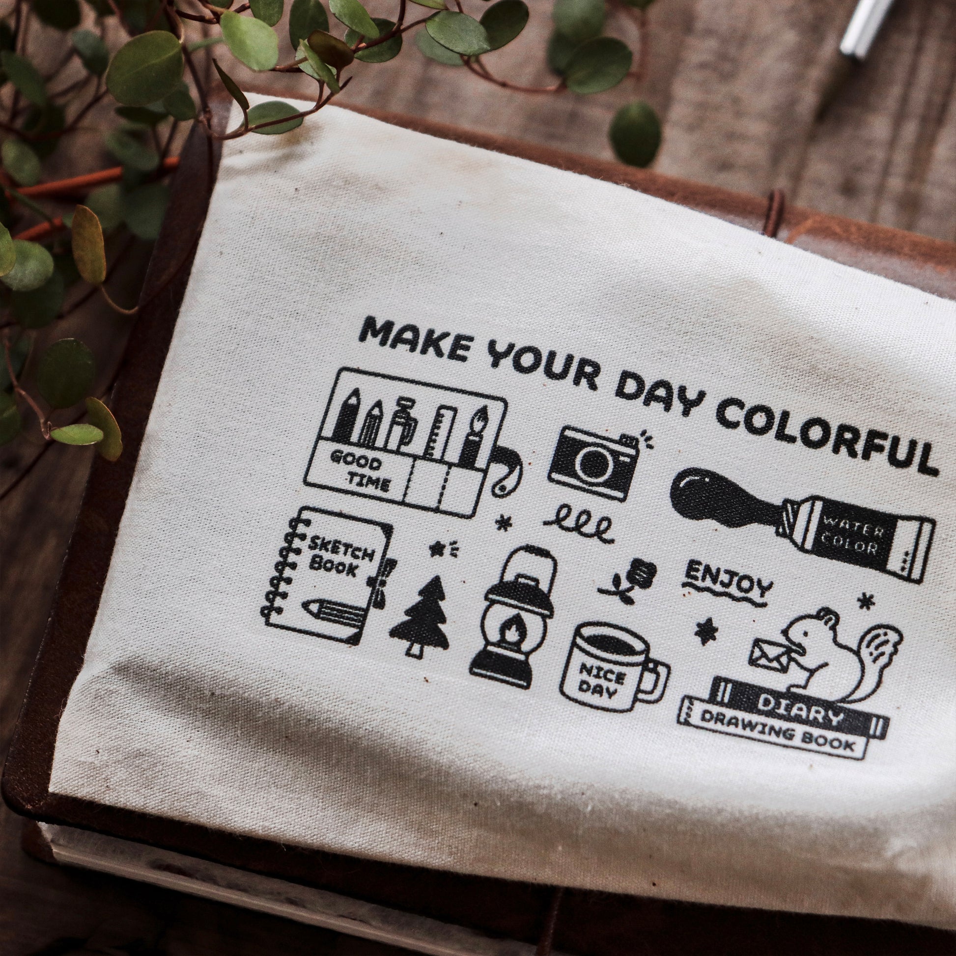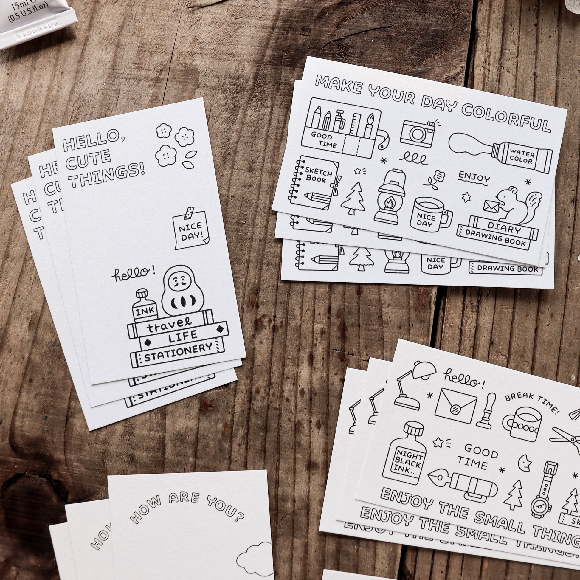 It also includes business card-sized coloring cards featuring eric's illustrations (5 designs, 3 sheets per design), perfect for coloring or using as message cards. A cotton storage bag is also included.