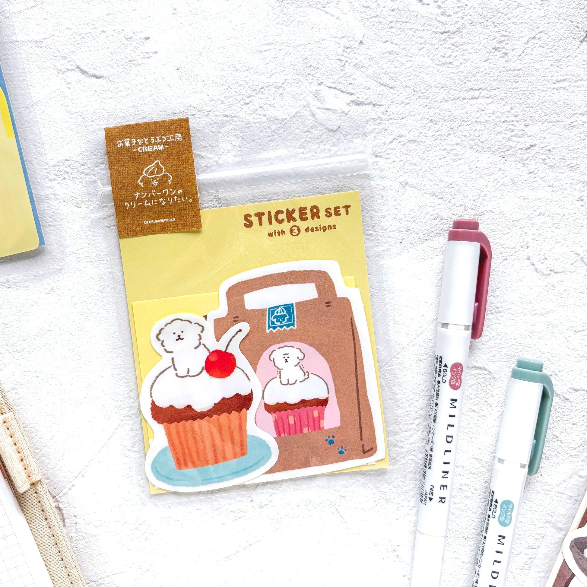 Set of 3 cute vinyl stickers from "Okashina Animal Studio" collection. The word "okashina" can be 2 different meanings in Japanese; 可笑しな (okashina) which means "funny" and お菓子な which means "sweets / snack", and all the funny sweets items in this collection is to make you smile and maybe a giggle while enjoying each item.