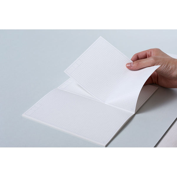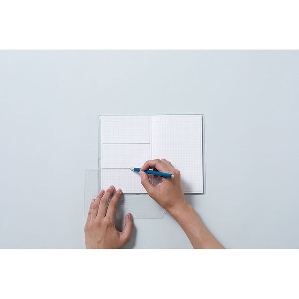 This notebook features a beautiful cover design by Japanese artist Nodoka Miyashita. It includes clear pockets and a plastic board that can be used as a ruler or bookmark. Each page has space for dates or numbers and is printed with subtle “split guide” dots to help you draw lines and customize your layout. The pages are perforated for easy tear-off, but won’t come out unless pulled. The notebook lays completely flat for a comfortable writing experience. A coverless version is also available.
