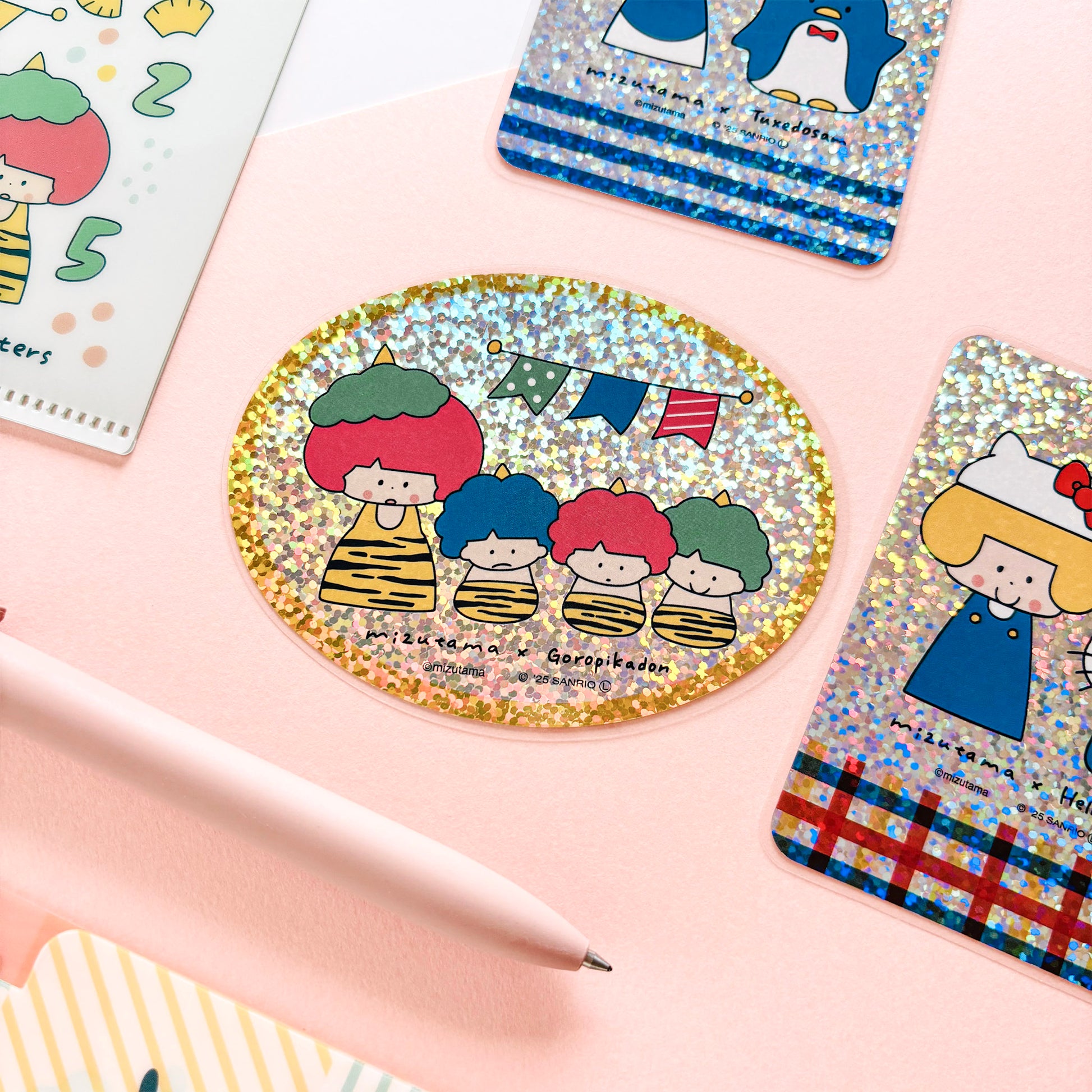 Limited edition shiny vinyl hologram sticker featuring a special collaboration between Japanese illustrator mizutama known for her colorful fun illustrations and cute Goropikadon!