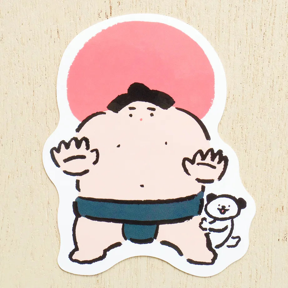 A vinyl sticker of cute Japanese Sumo wrestler design illustrated by Japanese artist Masao Takahata known for his cute and fun illustrations.