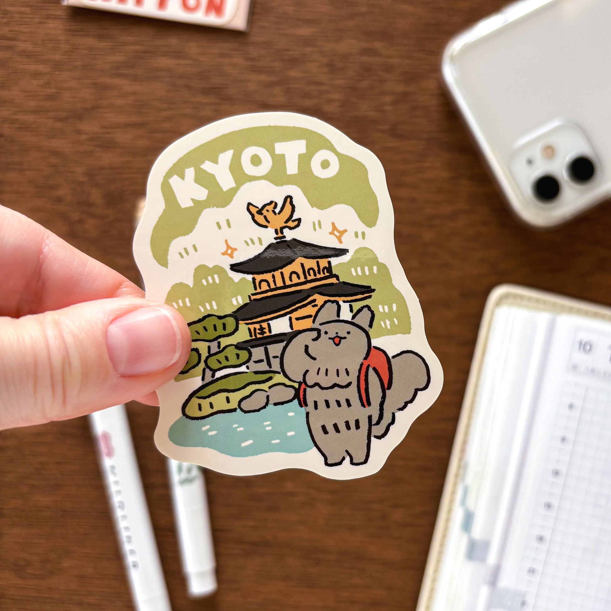 A vinyl sticker of cute "Trip to Kyoto" design illustrated by Japanese artist Masao Takahata known for his cute and fun illustrations.