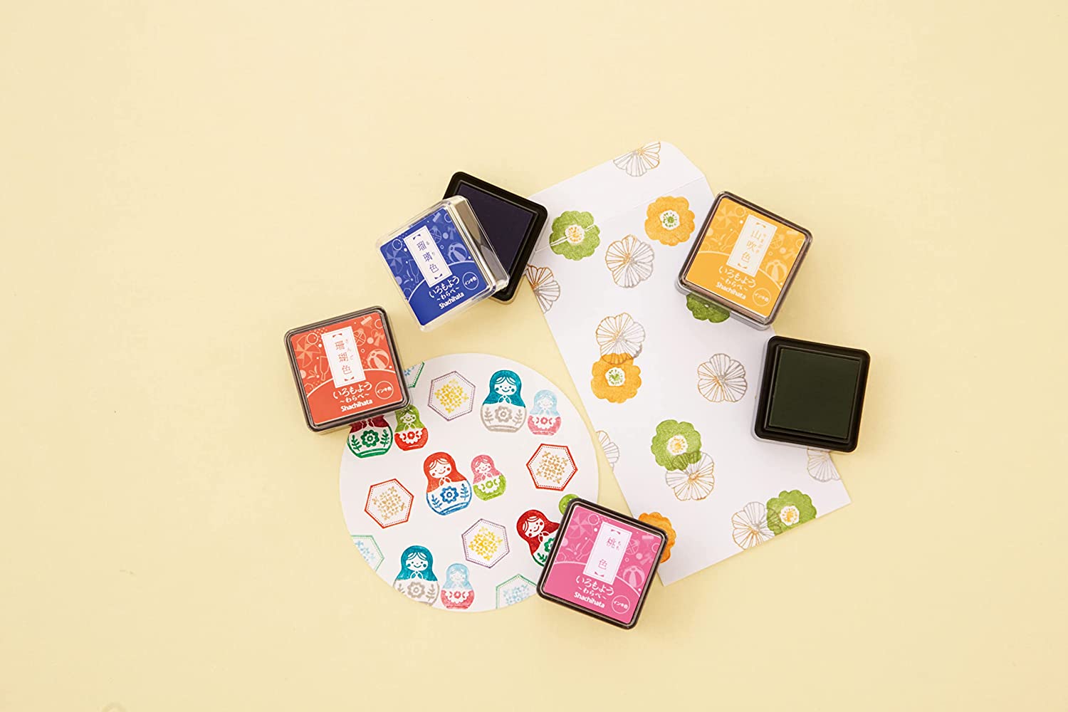 Introducing the new "Warabe" Shachihata mini stamp ink pad - small and convenient in a handy square size, with the same original oil-based pigment ink. The unique design allows for precise ink application on your stamp, using the edge of the ink pad. With its oil-based pigment ink, you'll get sharp and vibrant stamped images. Plus, this waterproof ink dries faster than water-based pigments like Versa Magic, and the ink pad case can even be stacked for effortless storage. The Iromono stamp ink series features colors inspired by traditional Japanese hues.