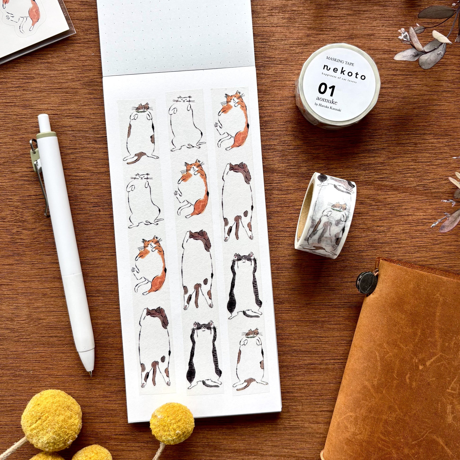 These washi tape feature cats stretching out and sleeping peacefully, capturing their relaxed and cozy poses.